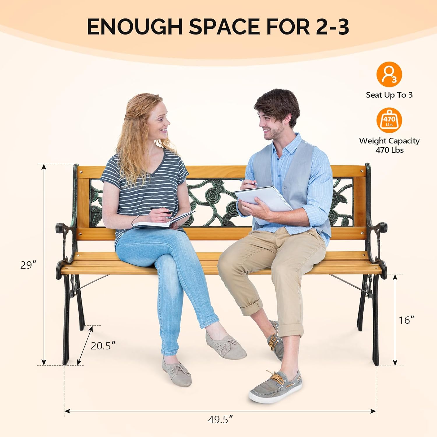 VINGLI Outdoor Bench Metal Garden Bench, Wood Patio Benches w/PVC Backrest Cast Iron Love Seat Park Benches for Porch Yard (Rose)