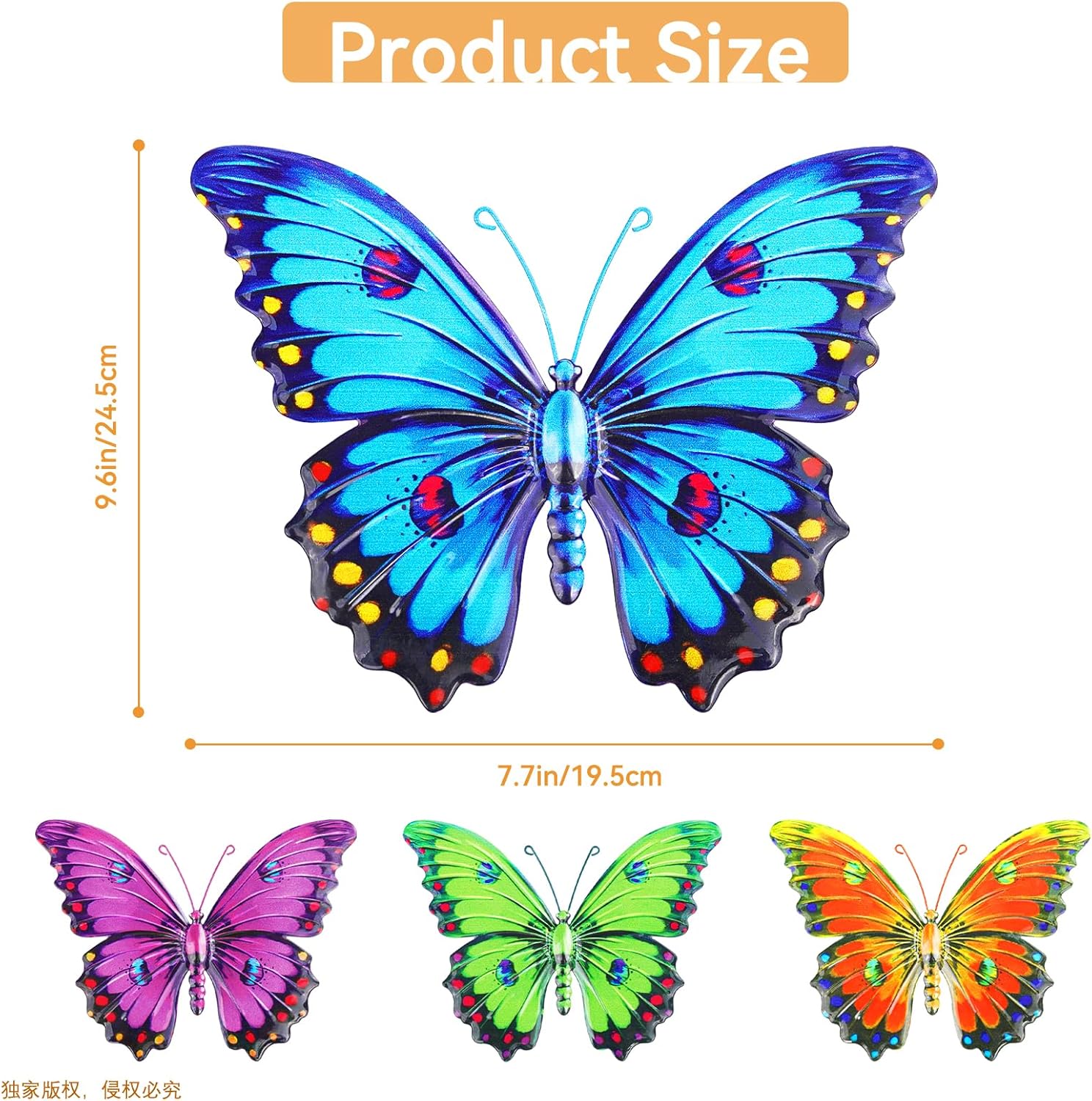 • 【Easy to Hang】The size of 4 colorful butterflies is 19.5 x 24.5cm (7.7 x 9.6 inches). There are two hooks on the back of each metal butterfly, you can easily hang them on the wall or fence, adding natural beauty to your home decoration.
