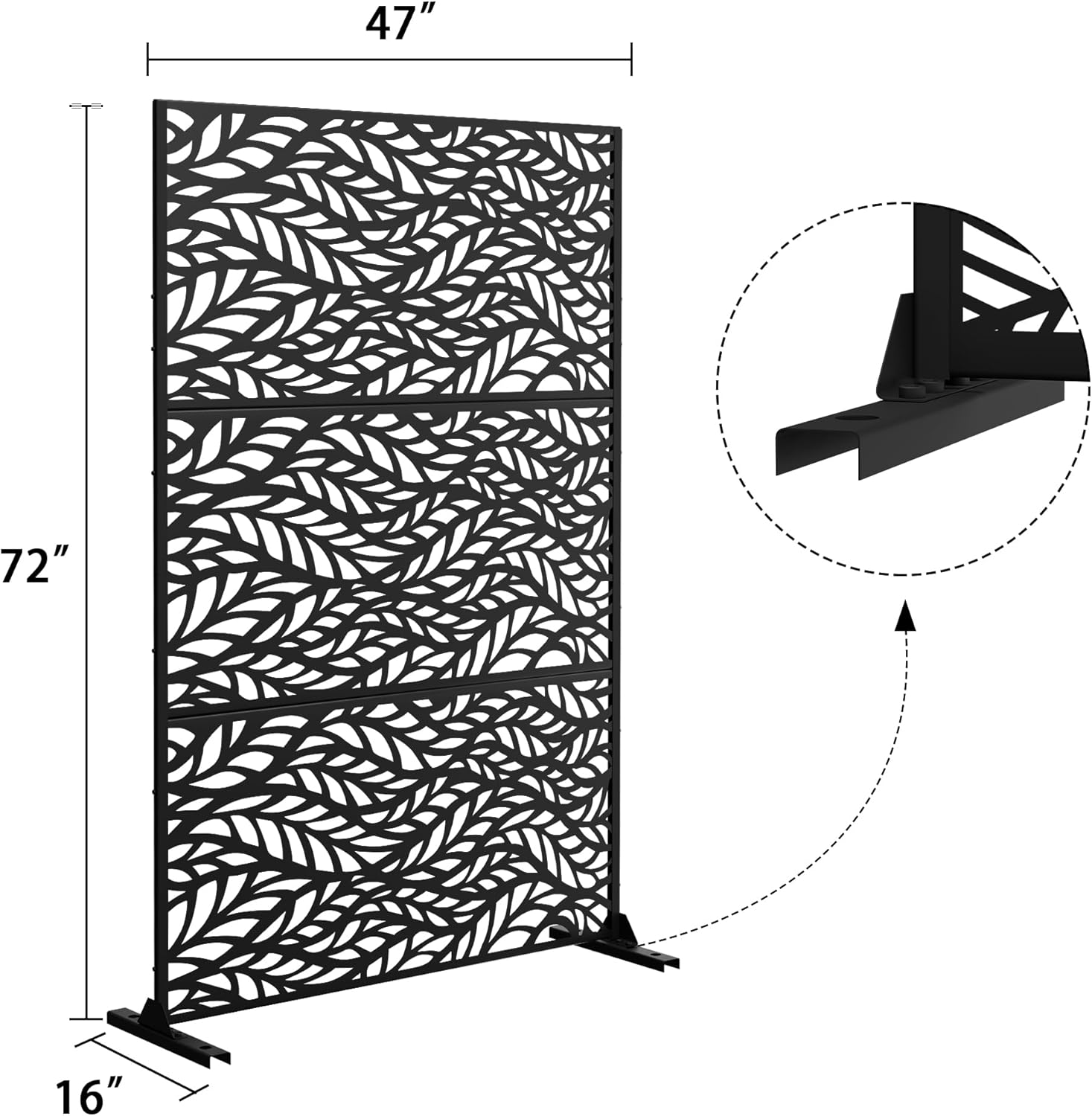 Metal Privacy Screen Outdoor 72" H×47" W,Freestanding Decorative Privacy Screen for Balcony Yard&Garden,Privacy Fence-Black&Leaves