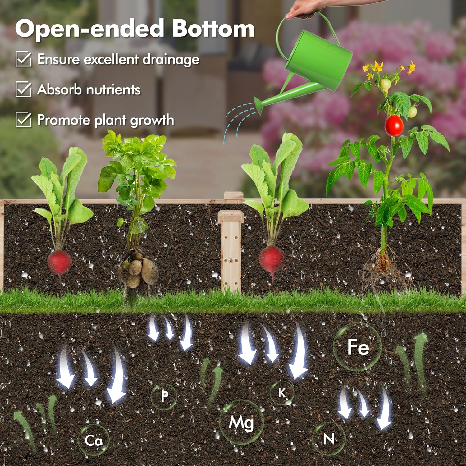 • 【Superior Drainage & Root Growth】 Equipped with an open-ended base, the garden planter offers outlets for excessive water to drain out, preventing water-logging and safeguarding the planter from swelling. In addition, humidity and nutrients are kept in balance to promote plants growth.