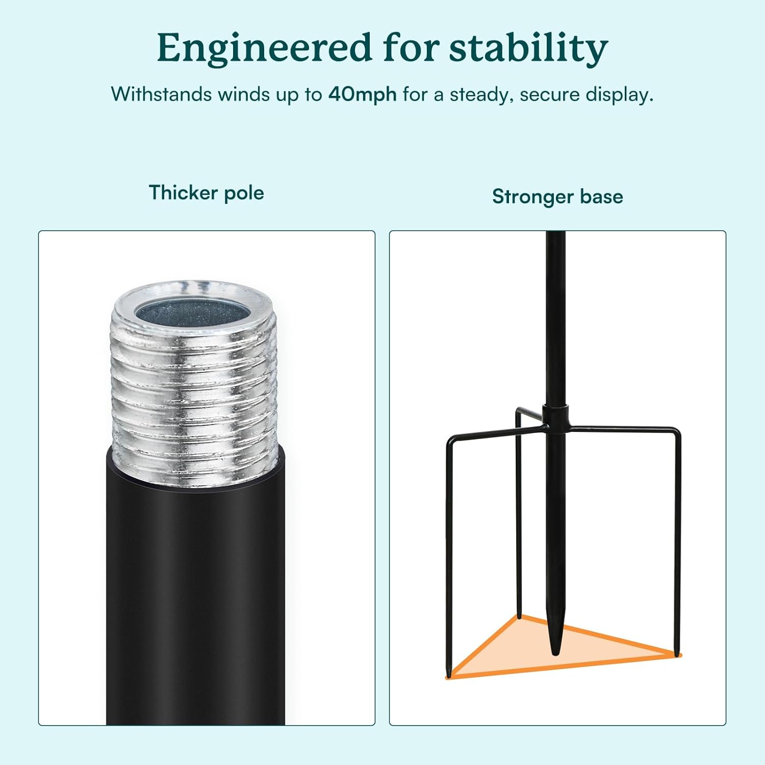 • Sturdy Stability: Thickened pole diameter and a four-foot base design provide reliable grounding