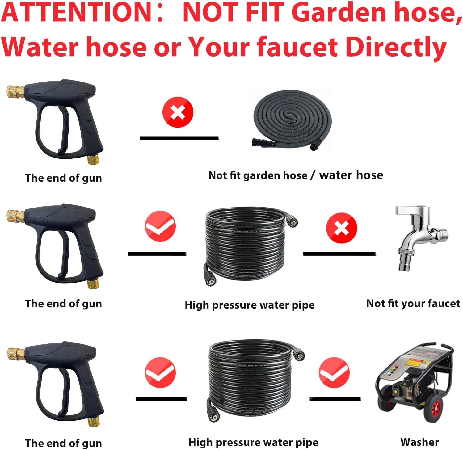 • ❀【Attention】Not Fit GardenHose, WaterHose or YourFaucet Directly, it must be connected to the hose of the high pressure washer before it can be used normally.