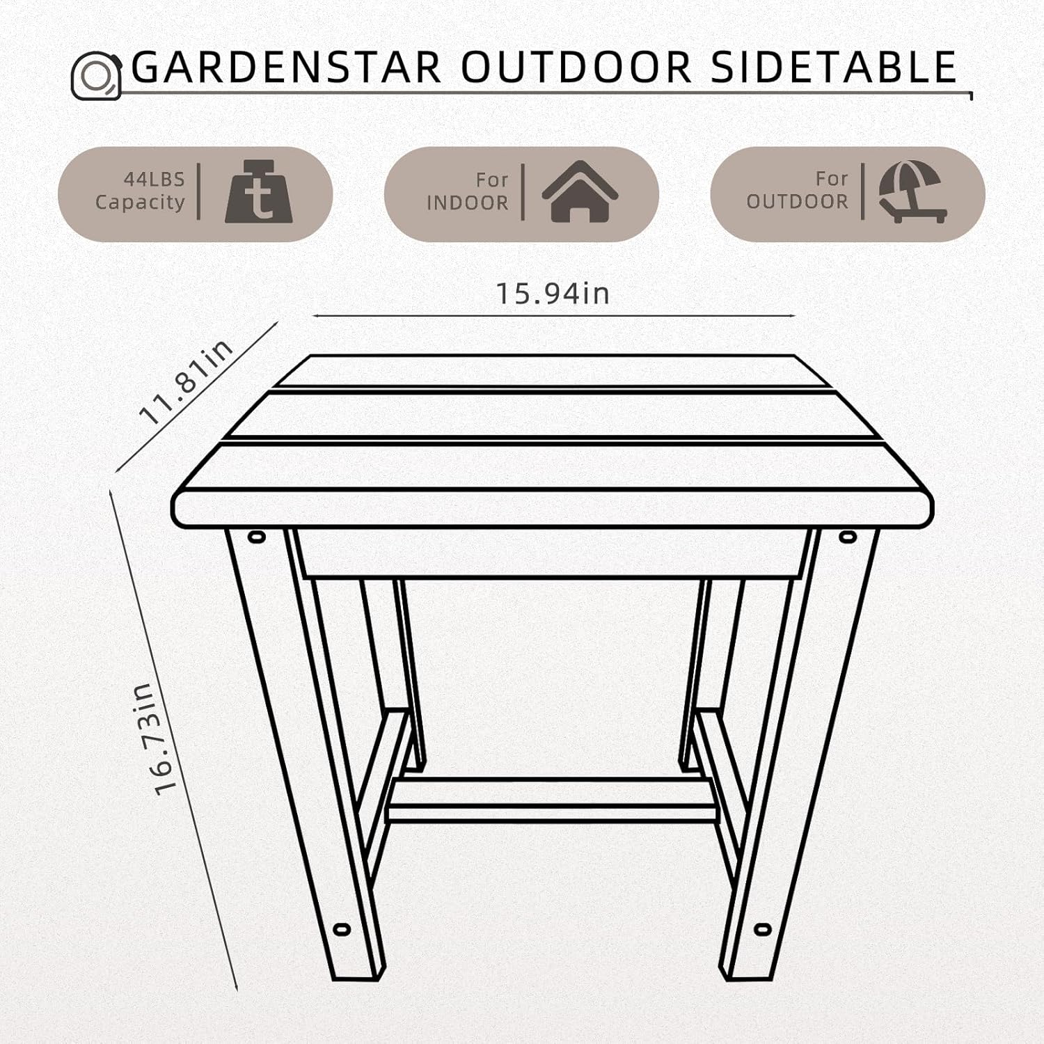 • 【Modern Design Material】GARDENSTAR outdoor side table, made from UV-resistant HDPE, combines the elegance of natural wood with exceptional durability. Unlike traditional wood, it remains sturdy in any climate. The smooth tabletop is easy to clean with soap and water, while sun suppressants ensure long-lasting color without fading or darkening.