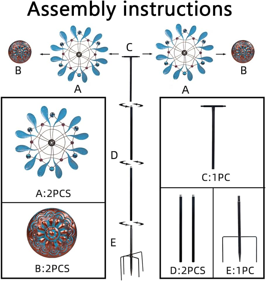 • Easy to Install:This wind sculptures & spinners is easy to install, the whole installation only need to take 4-5 minutes. It has a total of four poles, you can choose to install freely that adjust the height of the pinwheels