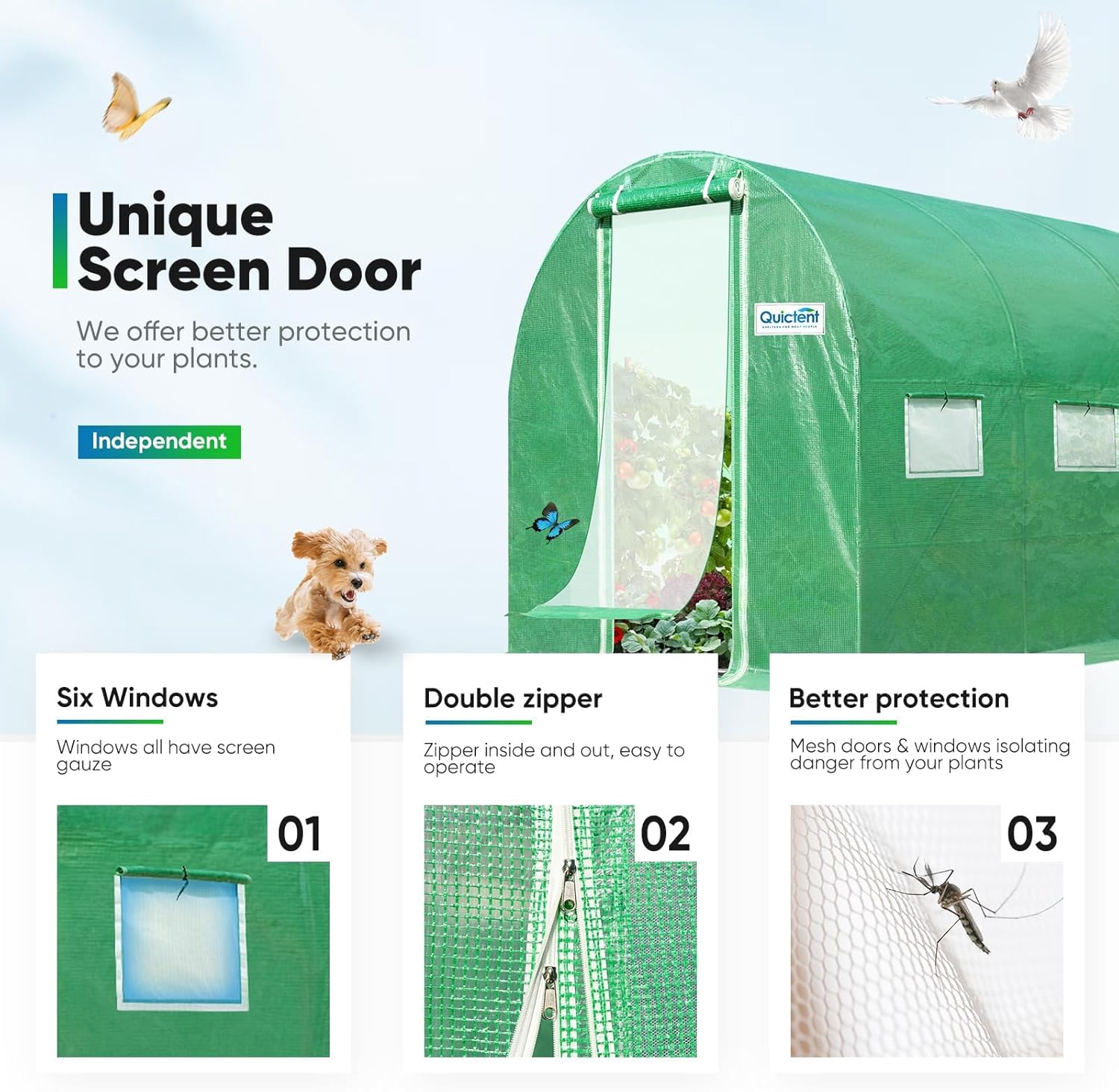 • Year-Round Versatility - Close all doors and windows for a sealed environment, ensuring excellent temperature control. It offers a relatively airtight environment, fostering exceptional temperature control. With a remarkable ability to adapt to all seasons, it is your go-to choice for cultivating a variety of plants throughout the year.