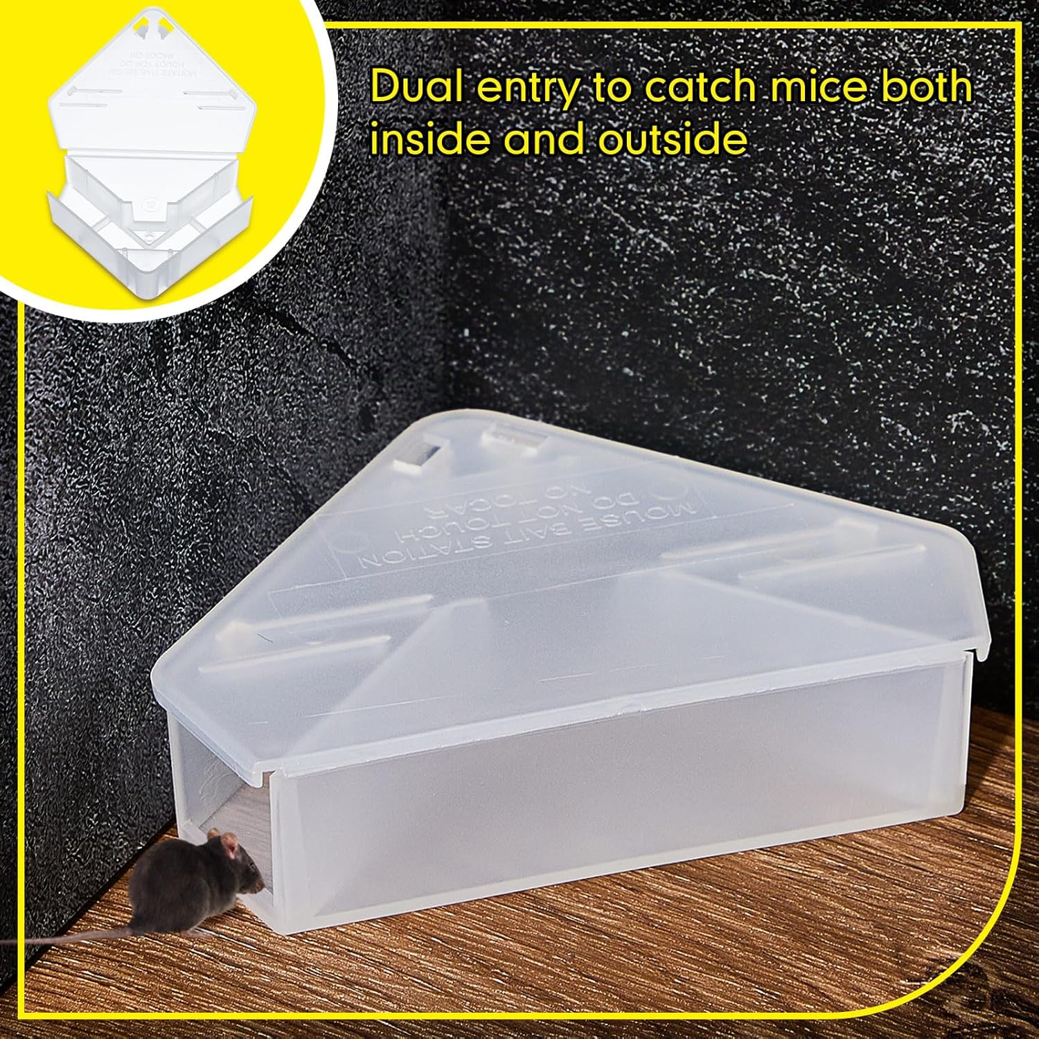• Triangle Design: the mouse station is designed in a triangle shape, which is stable and safe, suitable for placing in small spaces, corners and under furniture;Please note: The mouse trap station will not catch mice directly, please use it with poison bait