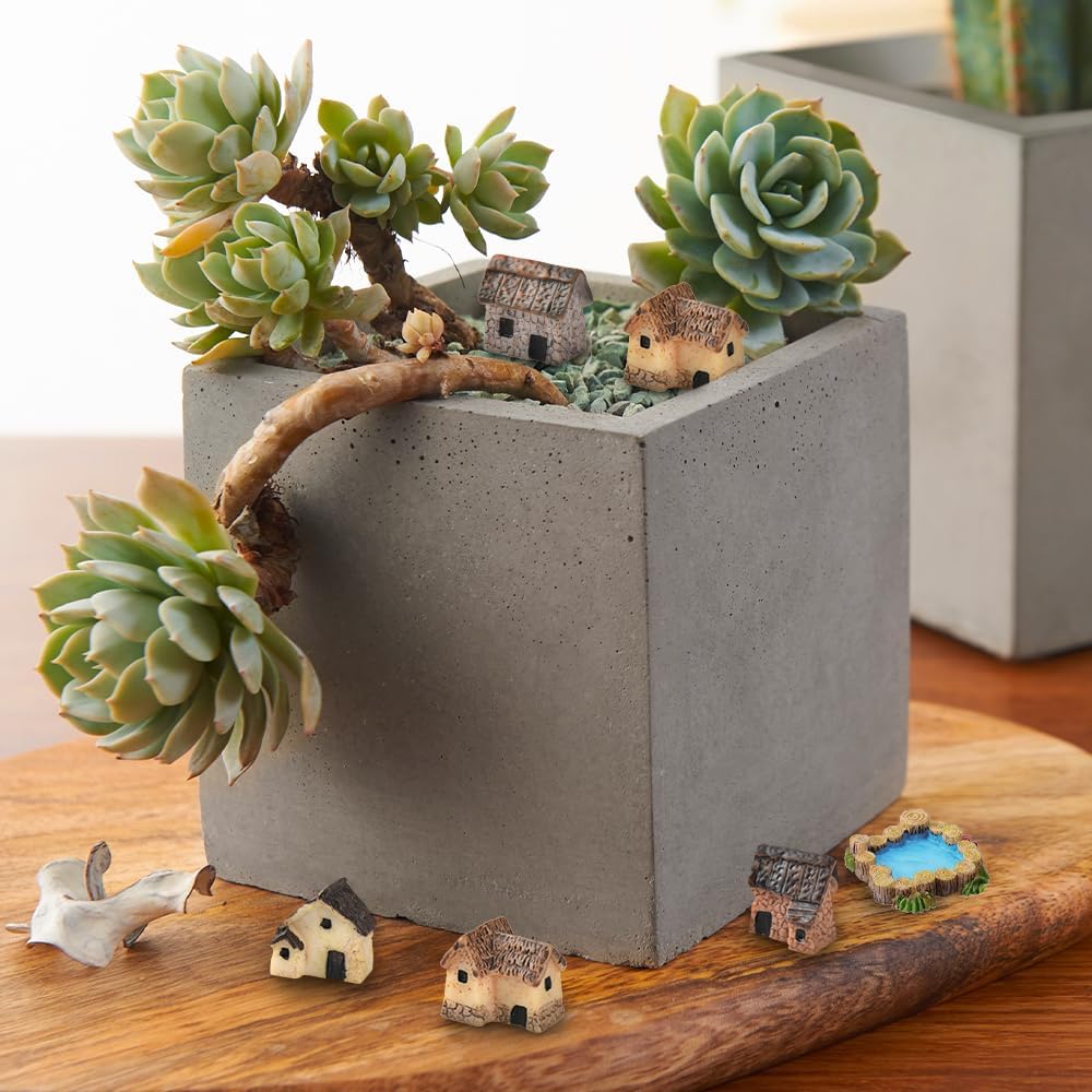 16PCS Miniature Stone House Mini Fairy Garden Cottage House Micro Village Thumbnail Huts for Fairy Garden DIY Plant Pot