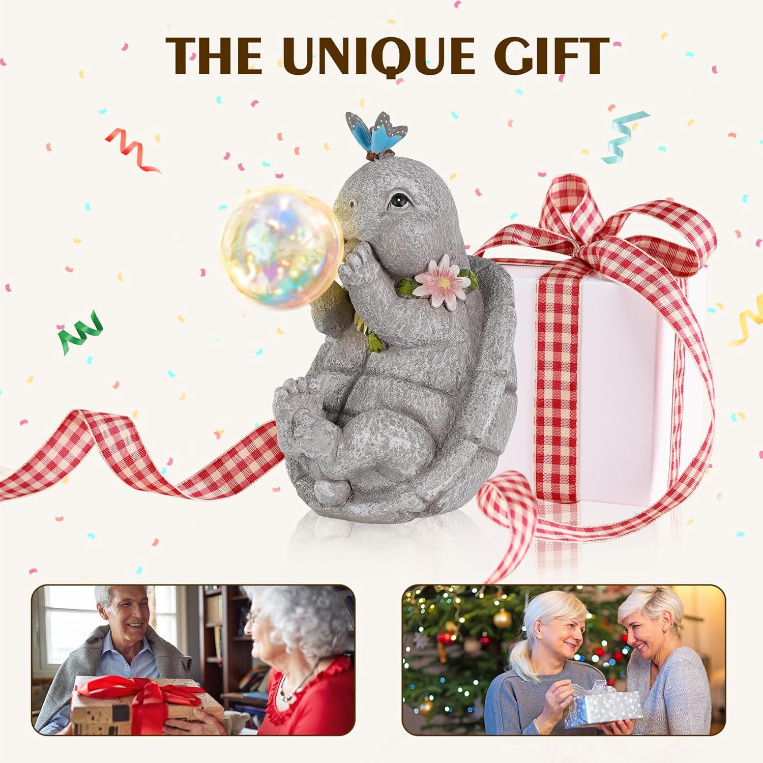 • Adorable & Vivid Statues: This turtle statue (6.5"W x 4.9"D x 7.8"H) features adorable butterflies and bright flowers, creating a charming decoration that adds color and life to your garden