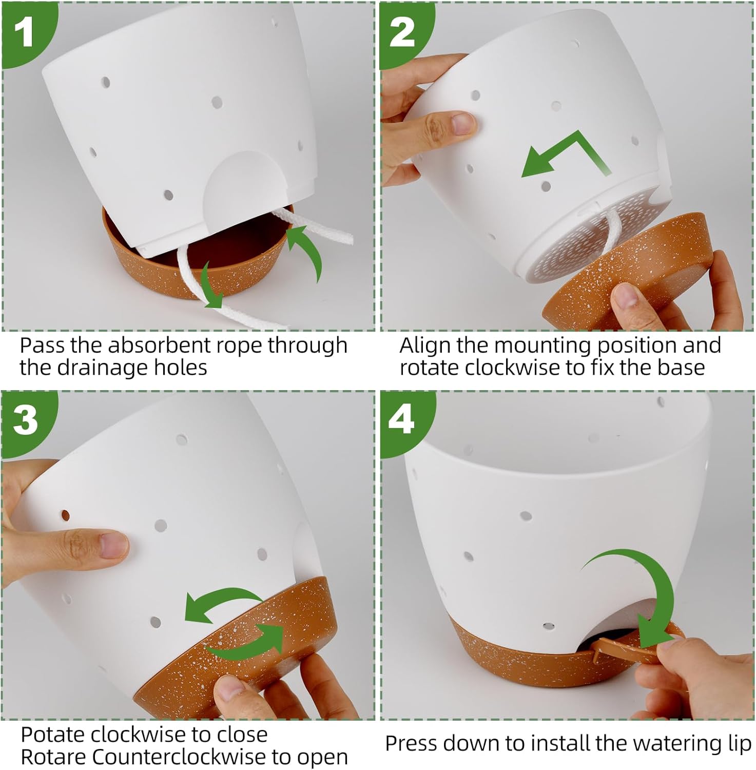 • Removable Tray - The plastic orchid pots come with a detachable tray that can be installed clockwise and removed counterclockwise. Each self watering plant pots includes a watering lip for easy watering and a clear view of the water level.