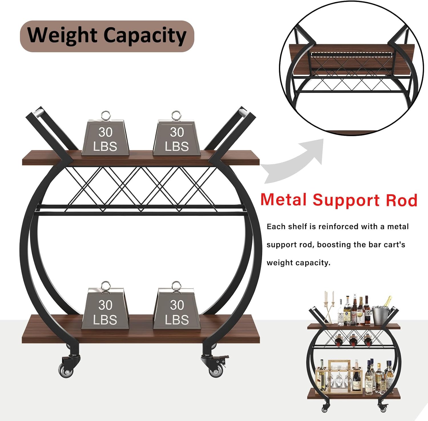 • 100% Satisfaction: With instruction and accessories included, you will never get stuck with the rolling bar cart assembly jobs. LVB has a professional customer care team that is willing to answer your questions before and after your purchase!