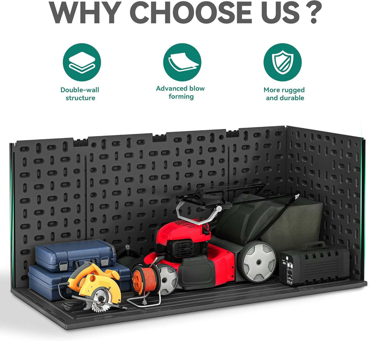 • Double-Layer Structure: Our all-weather resin deck box stands out with a double-layer structure and enhanced with internal reinforced steel beams, providing durability and resilience for outdoor use