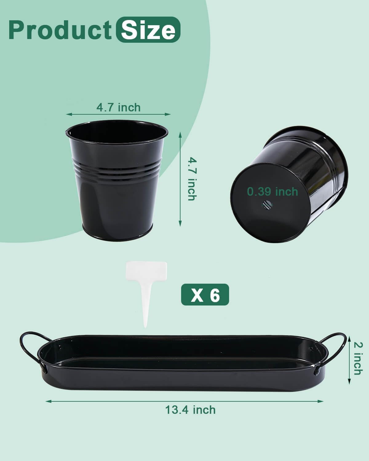 • 【Indoor Herb Garden Kit】The set includes black 3 galvanized herb planters (4.7 inches each) and a 13.4-inch tray, plus 6 plant labels for easy identification. Perfect for starting your own indoor herb garden on the windowsill or kitchen counter.