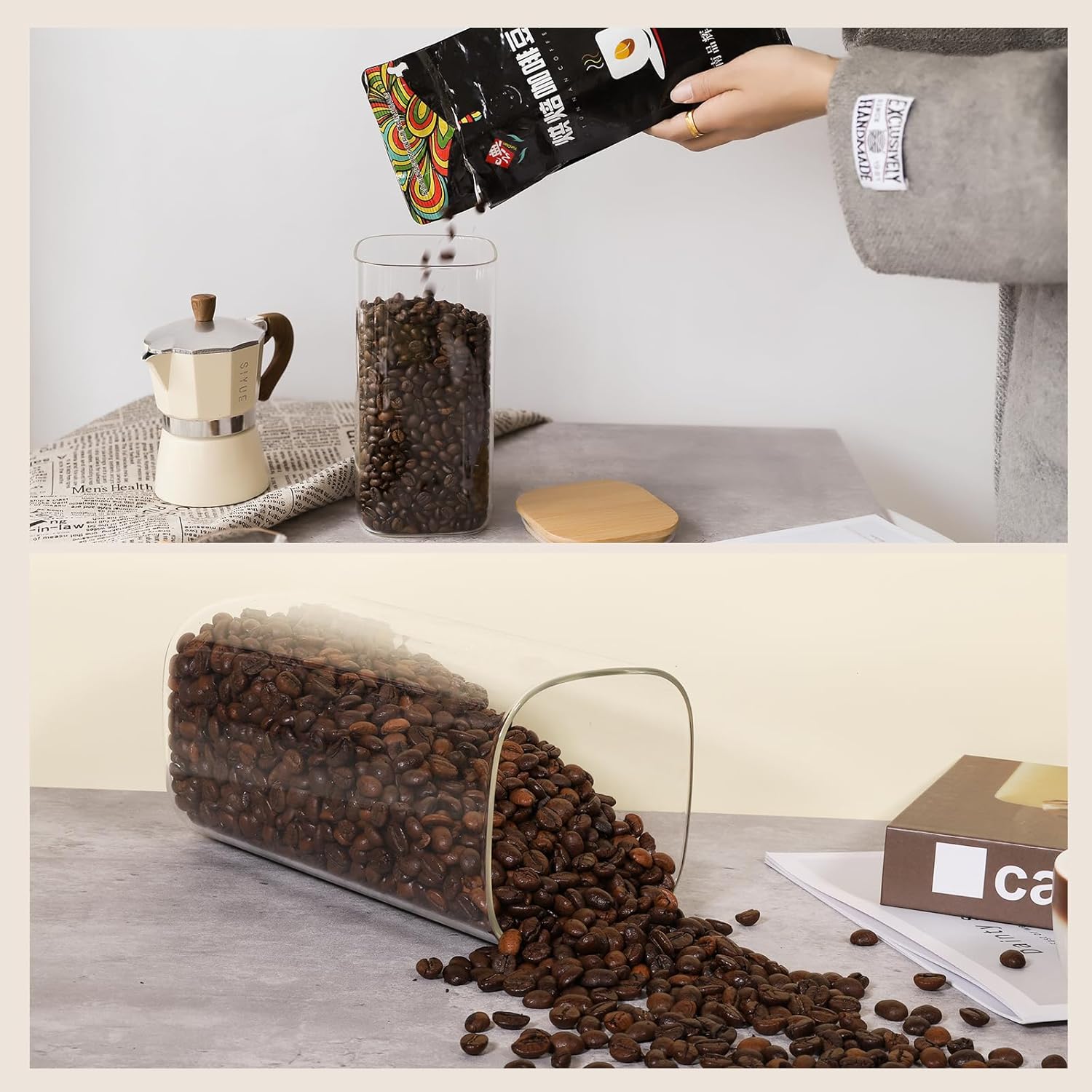 • Elegant and Practical Design: Elevate your kitchen organization with the sleek, square design of our Glass Food Storage Jars. These jars aren't just functional – they're also a stylish addition to your countertop or pantry. The clear glass allows you to easily identify the contents, making meal prep and cooking a breeze.