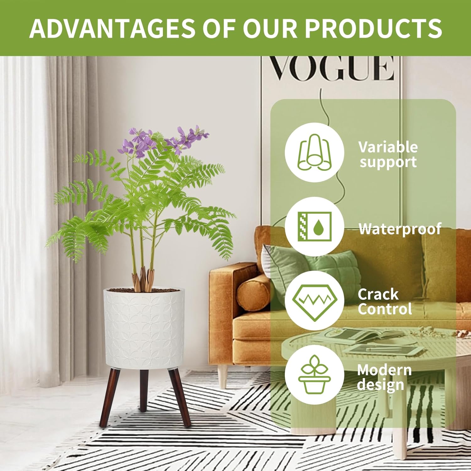 • lndoor decorative flower pot: Elegant modern mid-century design flower pot, can be placed in the bedroom, living room, balcony, kitchen and other places, adding beauty to home decoration,Let every guest appreciate the beauty of plants.