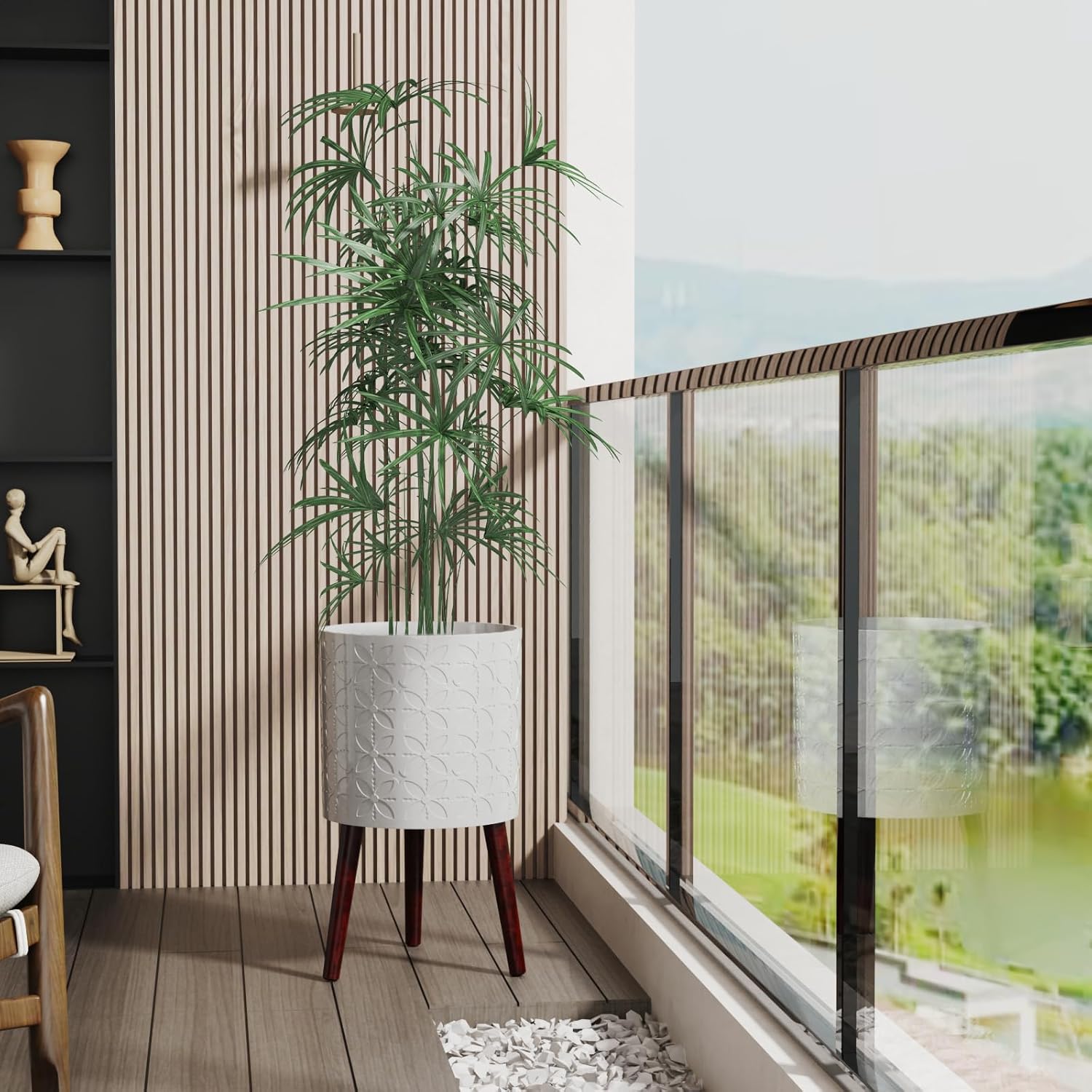 • Wooden leg flower pot: Three high-quality oak legs are very easy to install, just screw the wooden legs into the holes, no tools are required to complete.The triangular structure is more stable and can withstand up to 100 pounds.