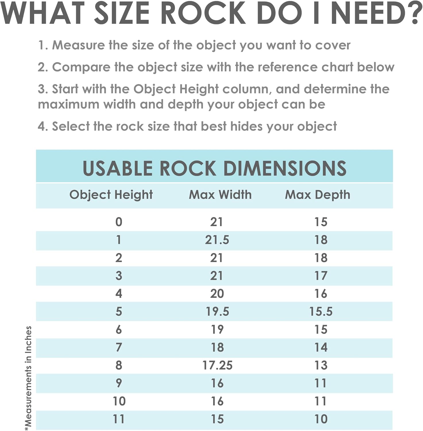 • COVERS WELLS, SEPTIC TANKS, AND MORE: Use this artificial landscape rock to cover unsightly objects in the yard or hide a spare key discreetly. The artificial boulder measures 22.75" W x 19.5" D x 14" H and weighs 2.6 lbs. The stakes included with the rock measure 1" W x 12" H each.