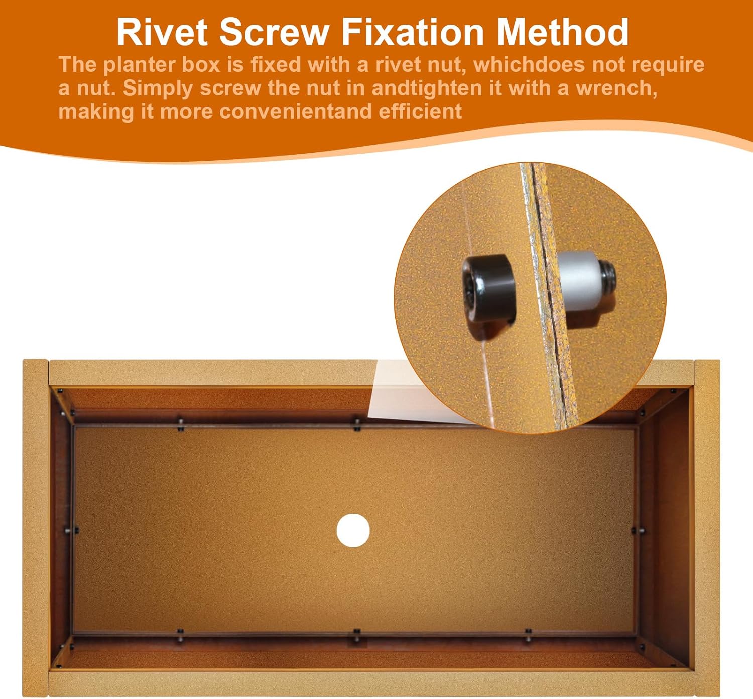 • 【Rivet Screw Fixation Method】: The planter box is fixed with a rivet nut, which does not require a nut. Simply screw the nut in and tighten it with a wrench, making it more convenient and efficient
