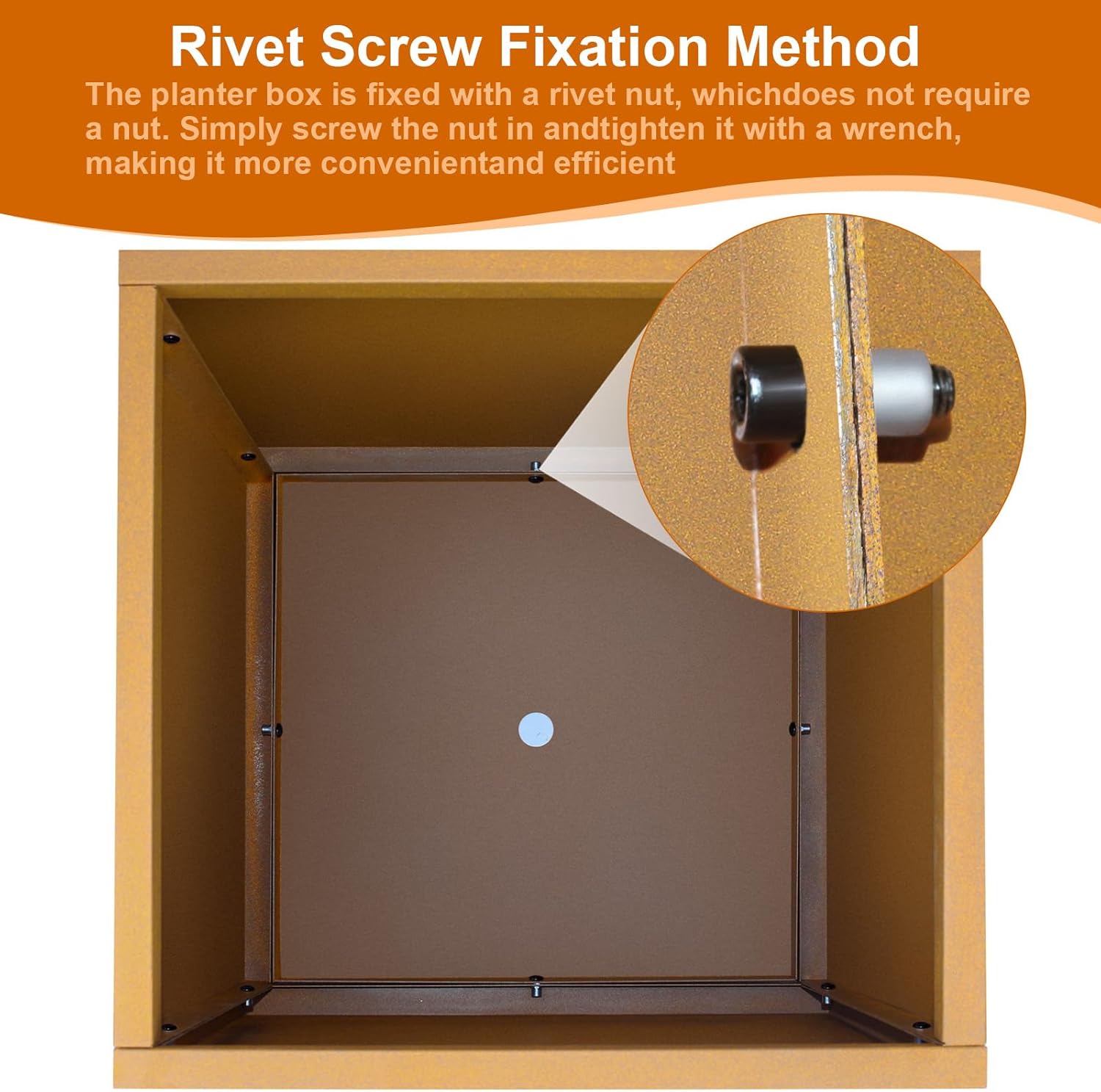 • 【Rivet Screw Fixation Method】: The planter box is fixed with a rivet nut, which does not require a nut. Simply screw the nut in and tighten it with a wrench, making it more convenient and efficient