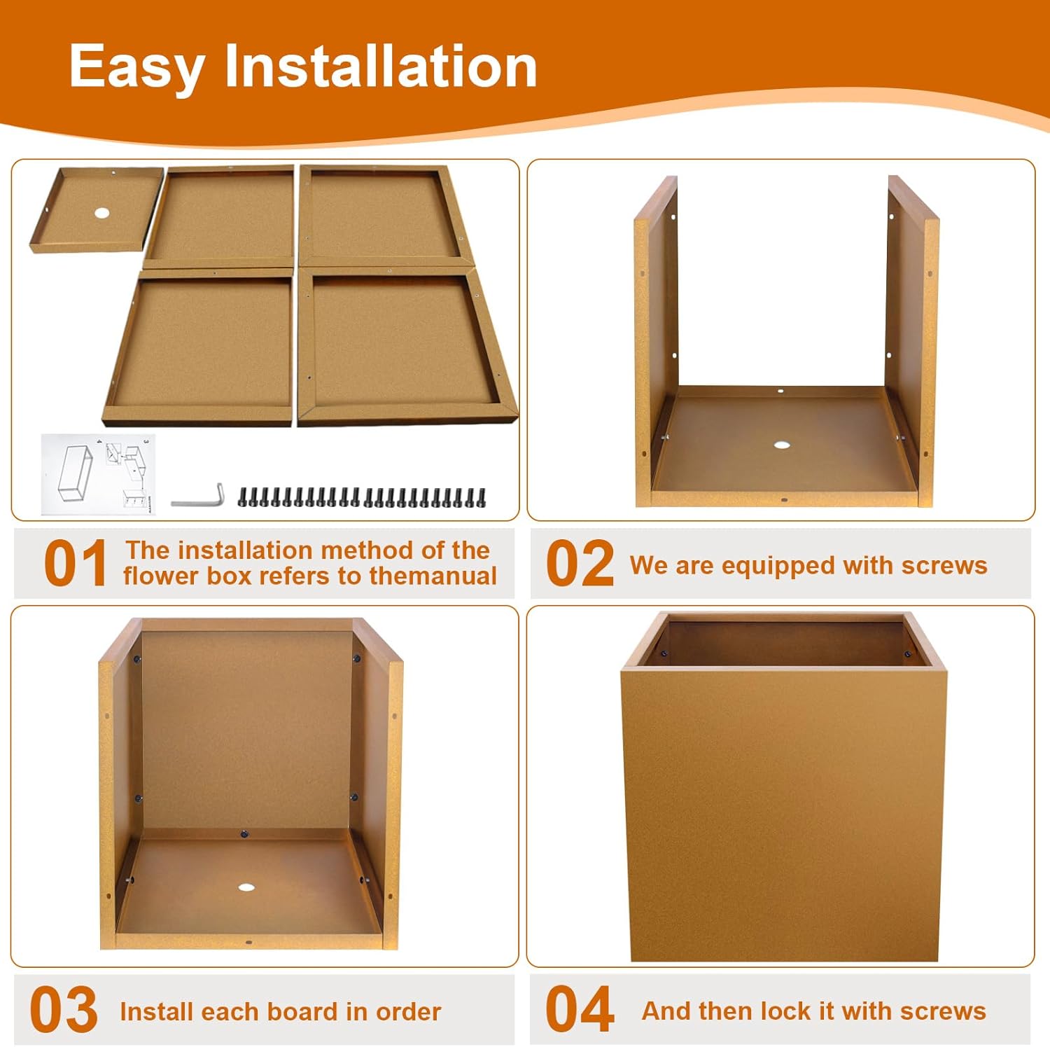 • 【Easy to Assemble】: The installation method of the flower box refers to the manual. We are equipped with screws, install each board in order, and then lock it with screws