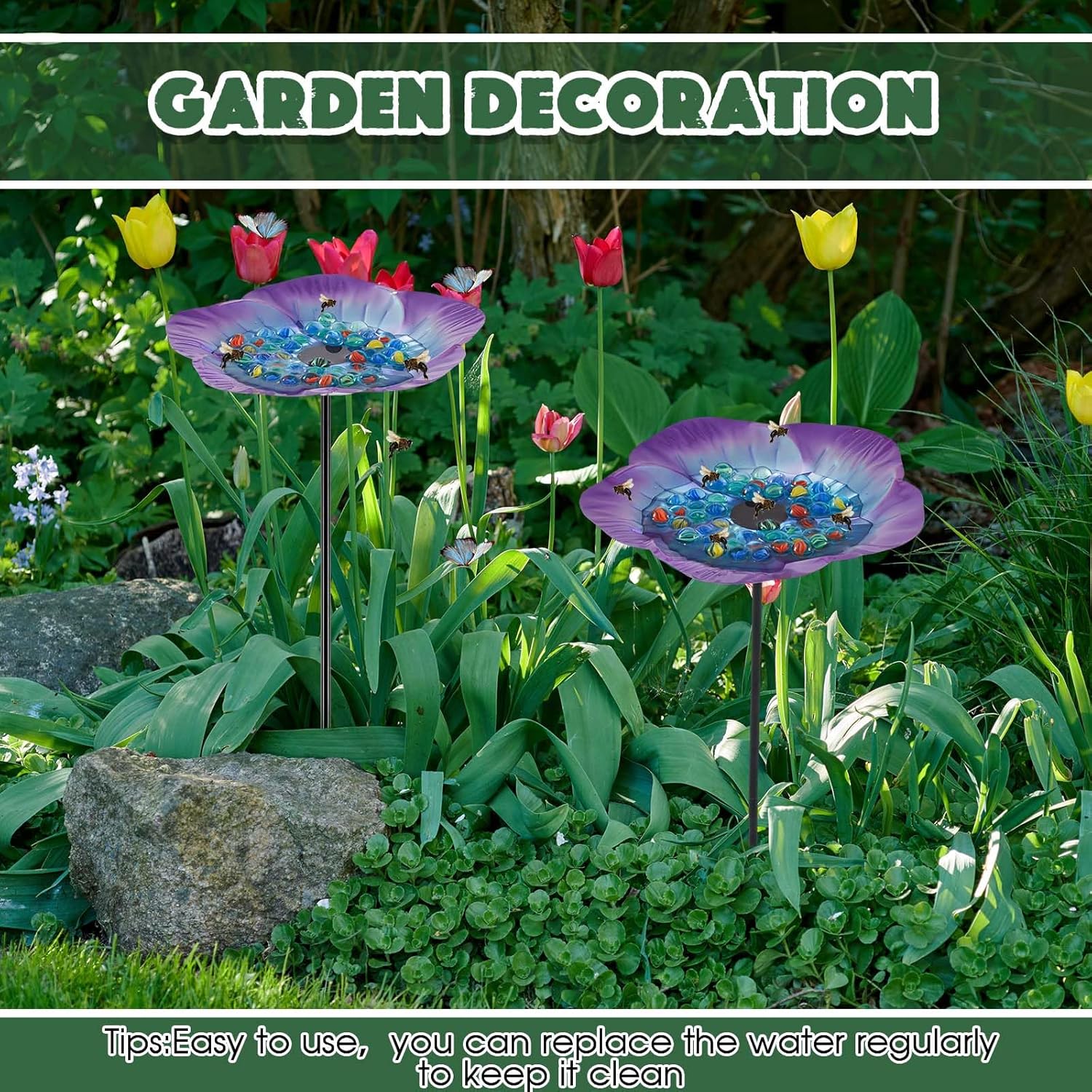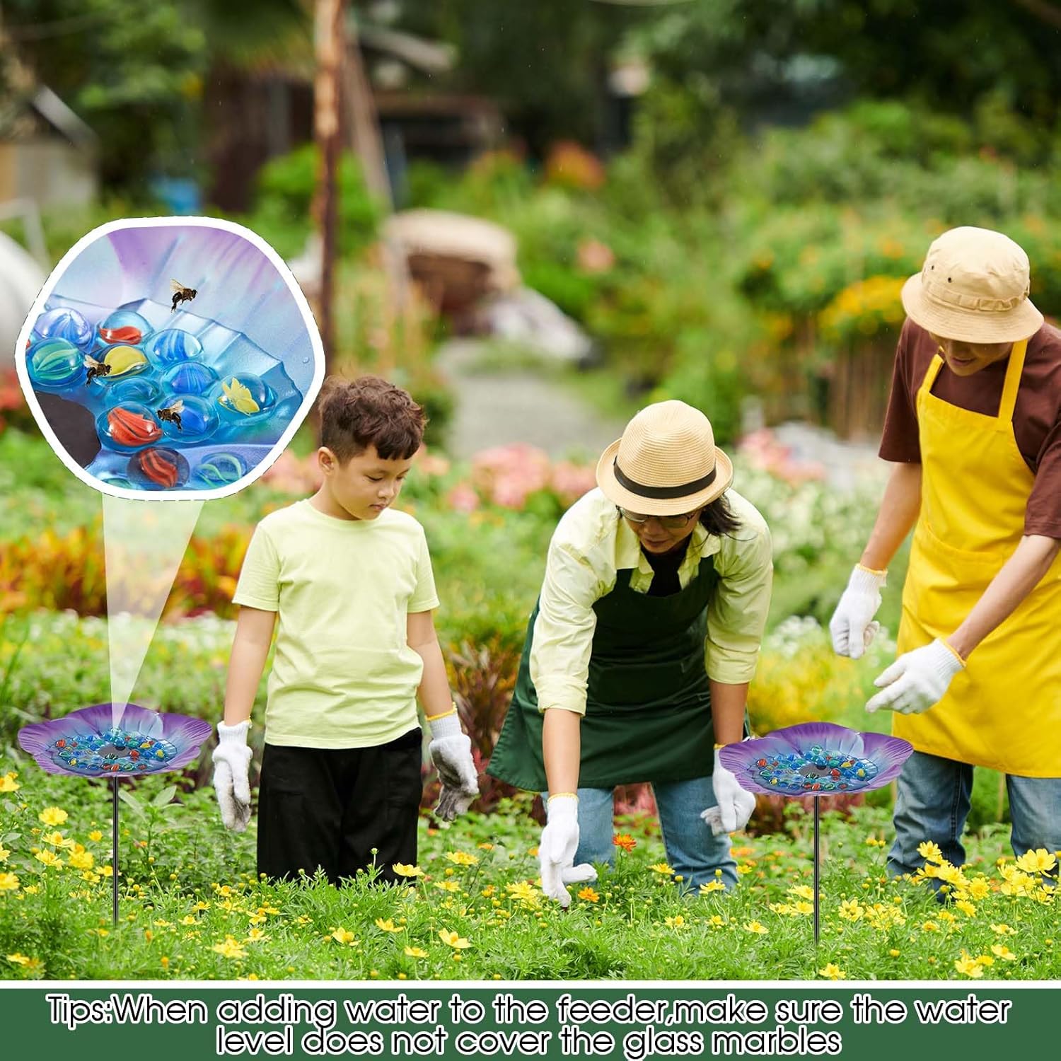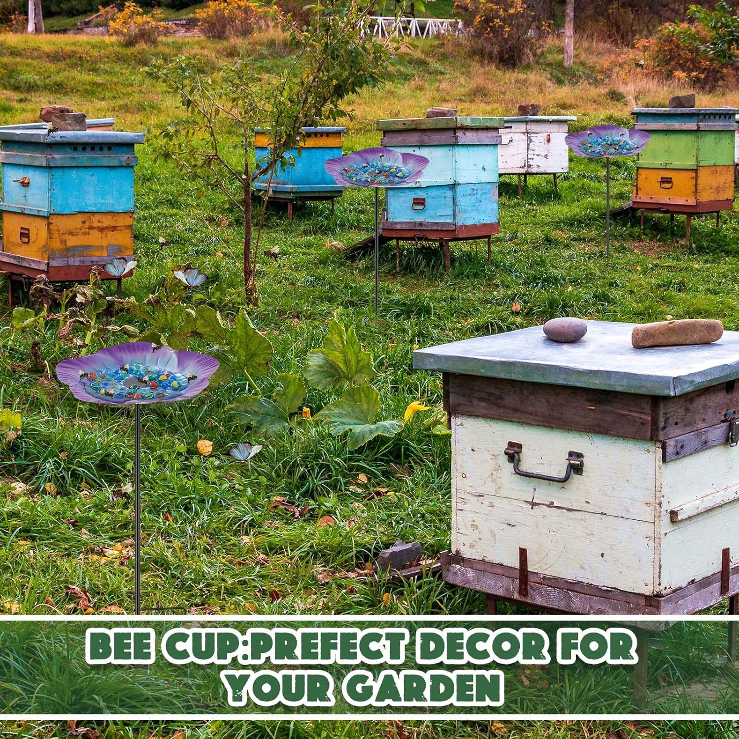 • Aesthetic Appeal: the bee water feeder isn't just functional, it doubles up as a beautifying element for your garden; Its vibrant floral pattern enhances your garden aesthetics, adding a lively touch amidst your flora and fauna