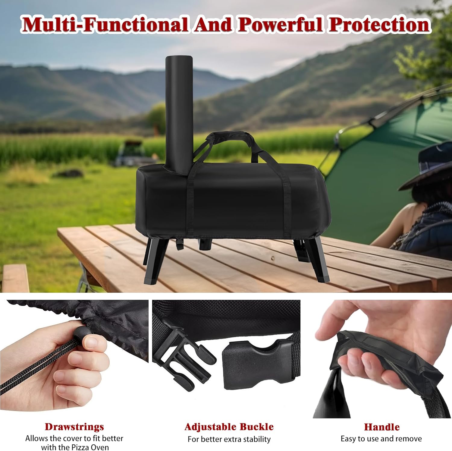 • Upgraded Design: With adjustable buckle on the bottom of the pizza oven, you can flexibly adjust the elasticity of the cover to prevent it from being blown away by the wind, our pizza oven cover/tote bag is designed with padded handles, convenient for you to carry the pizza oven to camping, the elastic band can provide stable protection on windy days.