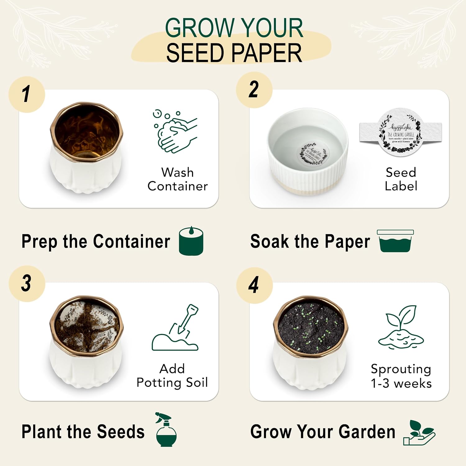 • FROM FLAME TO FLOWER: Each scented soy candle comes with a plantable seed label that can be used to grow wildflowers after the soy wax burns away; clean out the pot, add soil, and plant the seeds to watch nature bloom in your own home