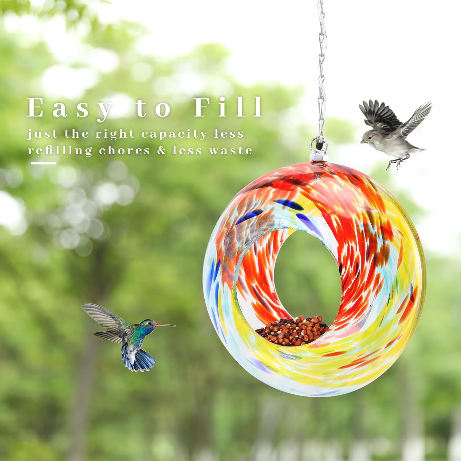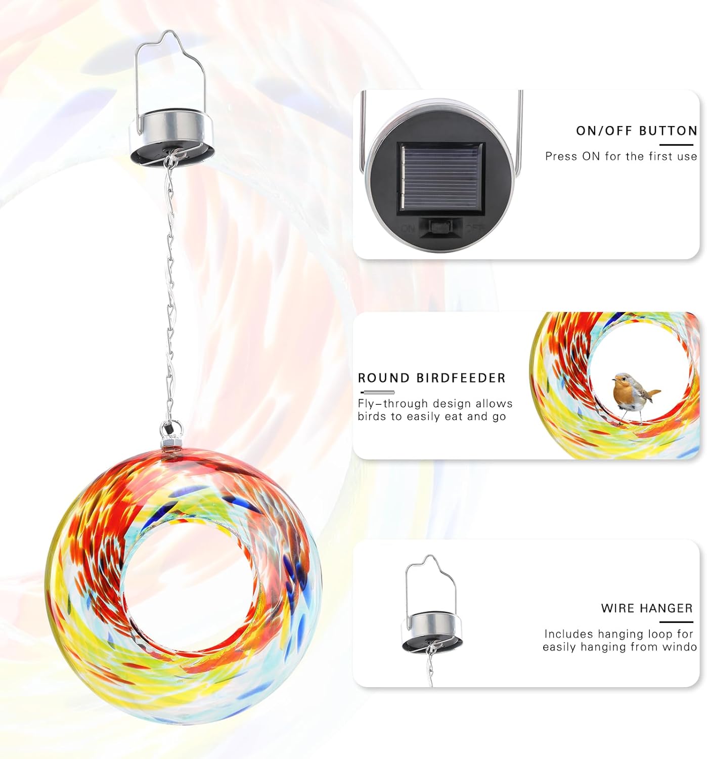 • 【A Perfect Gift Idea】Glass solar bird feeders are an excellent gift for nature lovers; they make a lovely outdoor decoration, and give people an opportunity to observe and photograph birds as they relax in your yard or garden