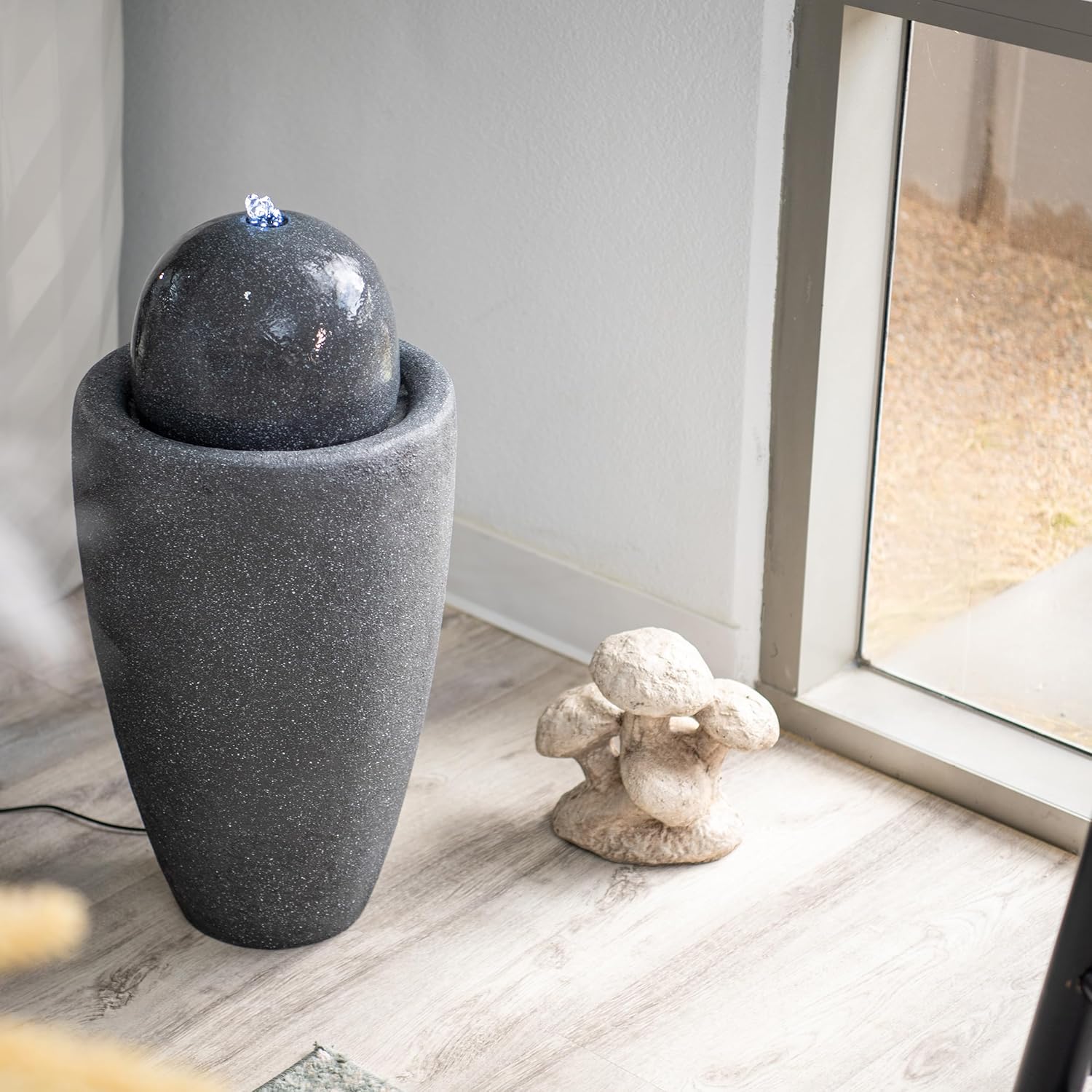 • GREAT SIZED AND LONG-LASTING: This ball water fountain decor measures 25.98"H x 11.81"L x 11.81"W, cord length 5 meters, made of durable Fiber Stone that ensures high quality for years. Also, water capacity of the fountain is 6.4 L.