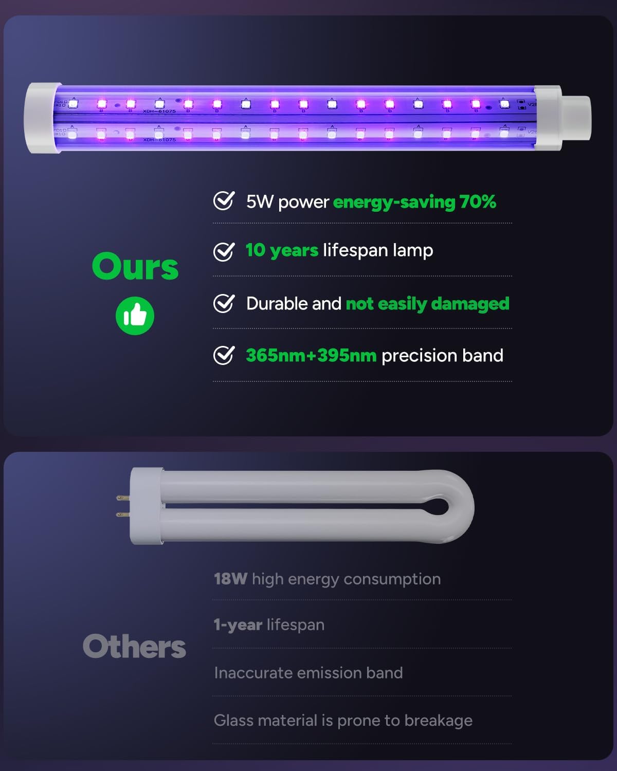 • Energy-efficient Features: The fly killer boasts LEDs with a lifespan of up to 10 years, reducing energy consumption by over 70%, and does not require bulb changes. This electric bug zapper is U.S. EPA registered.