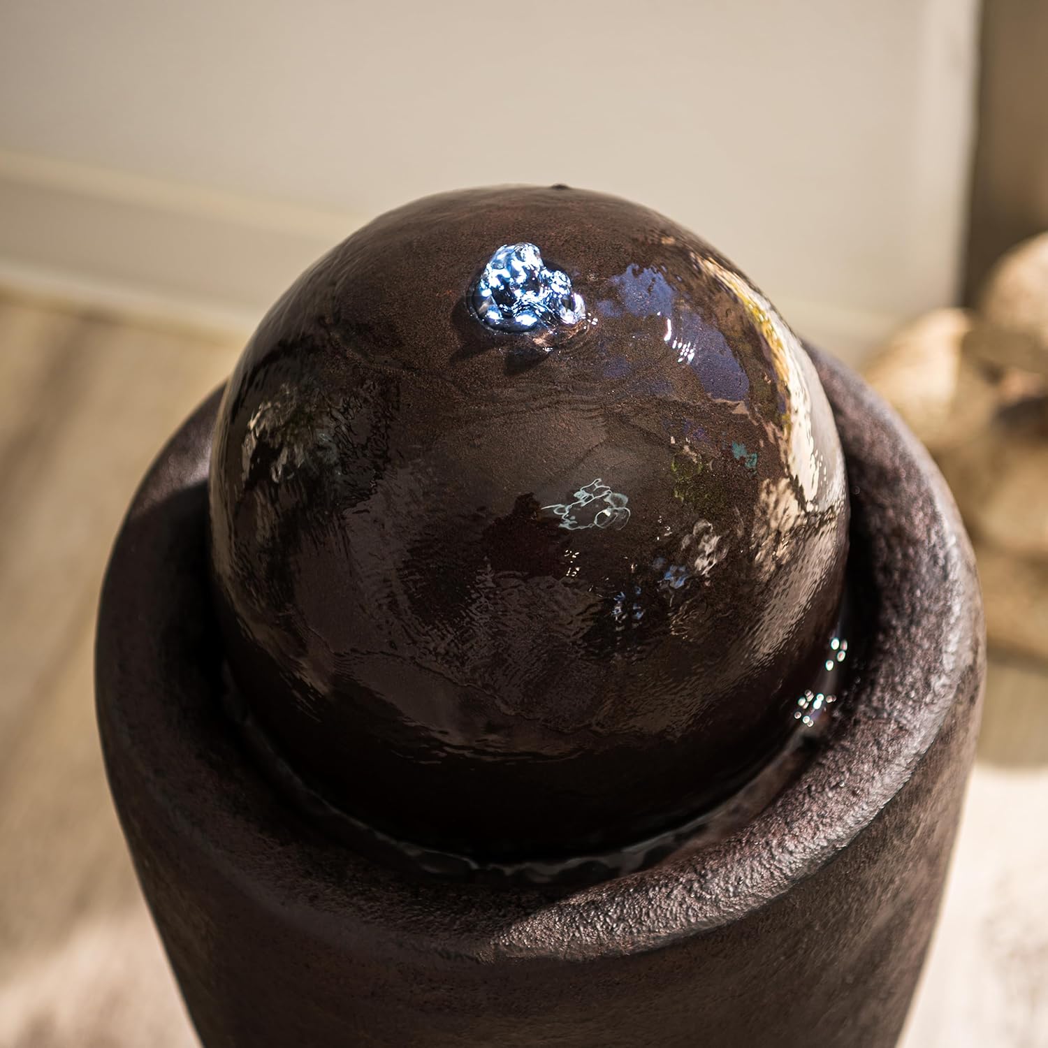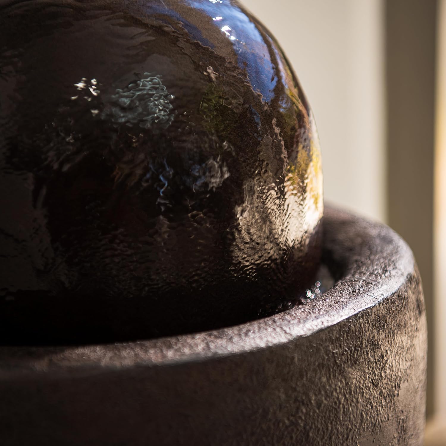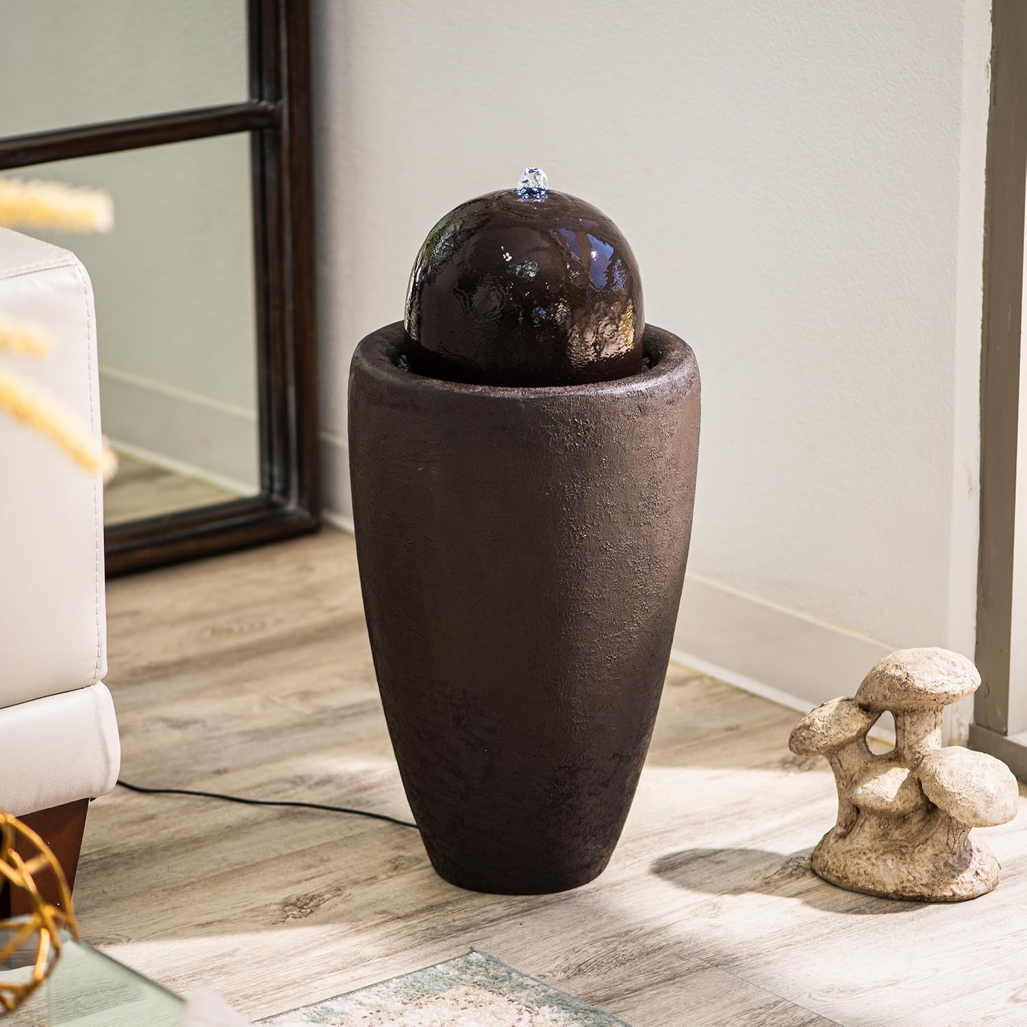• GREAT SIZED AND LONG-LASTING: This ball water fountain decor measures 25.98"H x 11.81"L x 11.81"W, cord length 5 meters, made of durable Fiber Stone that ensures high quality for years. Also, water capacity of the fountain is 6.4 L.