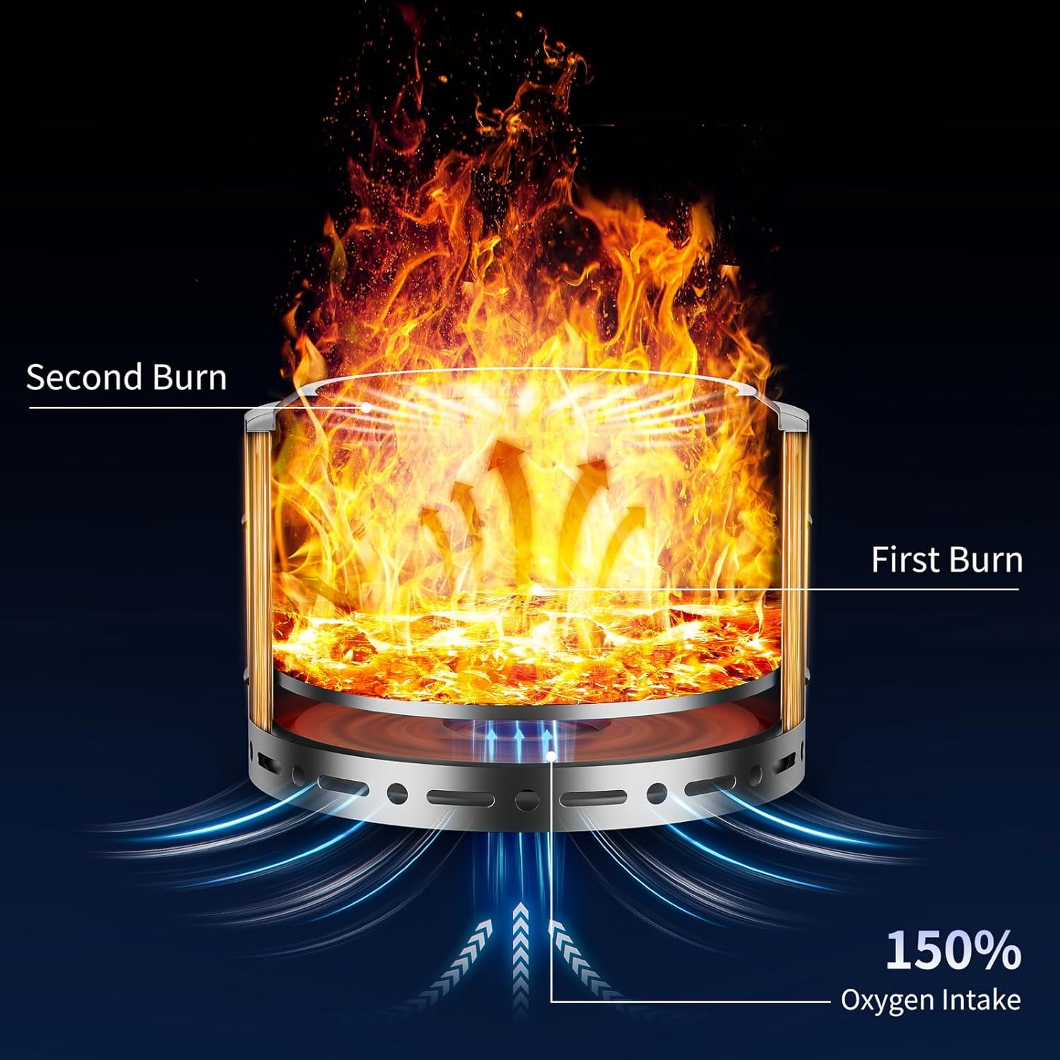 • [Portable Design]: Panovue smokeless fire pit is small and lightweight, we send a waterproof cover which can also be used as a carry bag, so you can carry the smokless fire pit easily. You can light a fire wherever you go - whether you go camping, have a party ,go to beach, or backyard.
