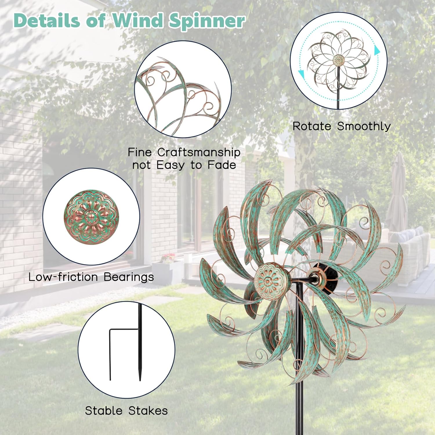 • 【Garden Windmill Decor】Wind spinners outdoor metal large with their unique shape and elegant lines, not only have practical functions but can also serve as decorations. Whether placed on lawn, garden,the green blades of kinetic wind spinners can rotate smoothly.