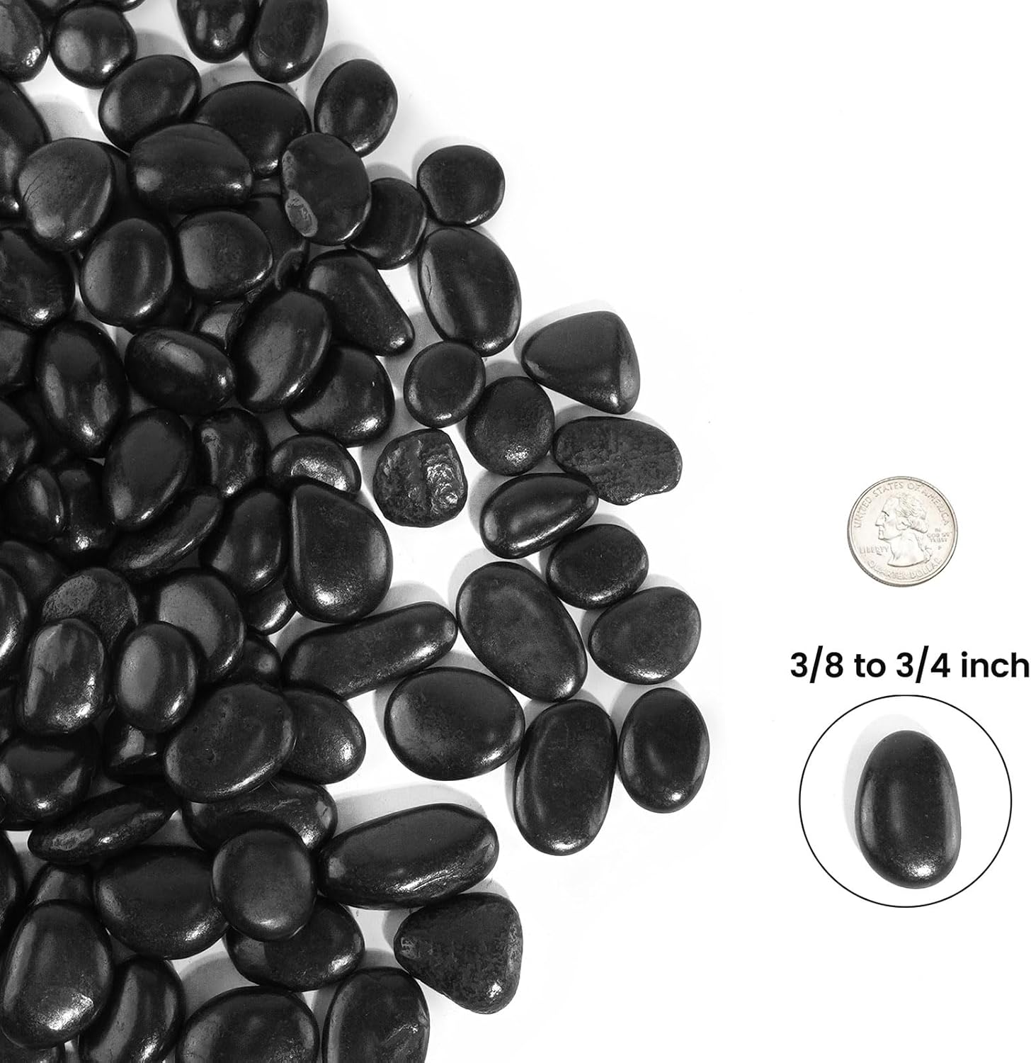 12 LBS River Rocks, StoneCreek, Decorative Garden Stones for Plant Landscaping, Polished Gravel Filler Pebbles for Home Decoration, Vases, Succulents, Flower Beds and Fish Tanks (Black, Medium)