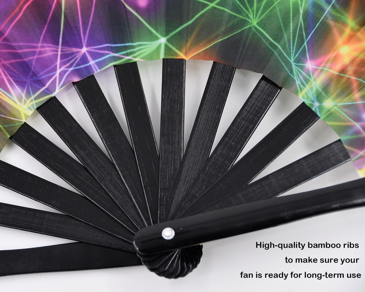 • OVERSIZE FANS: oversize rave fans. Each the large hand fan measures approx. Opens to 14 x 26 inches, Folds to 14 x 1 x 0.5 inches. oversize made you are sure to Wow Everyone in the Crowd anywhere anytime!