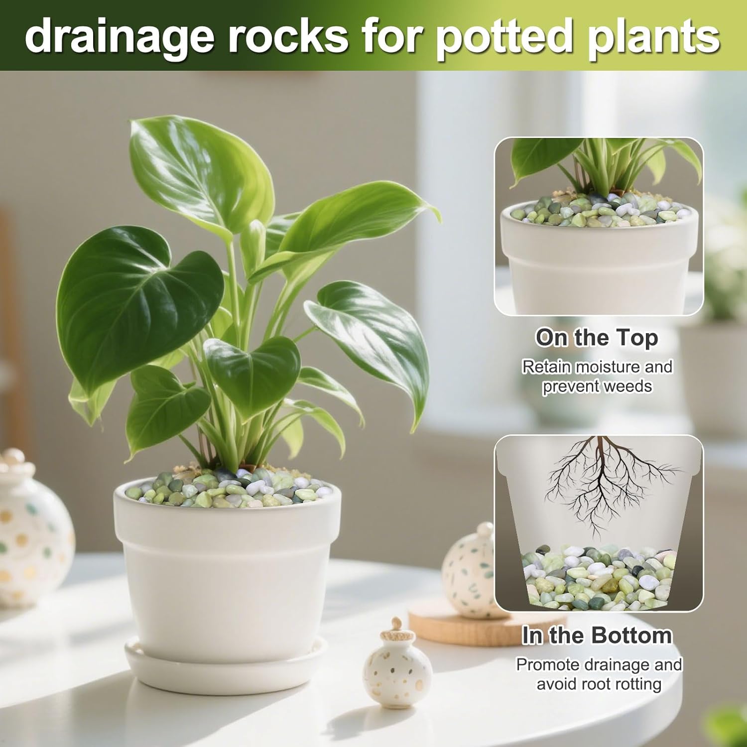 • 【Benefits for Plants】 Covering pots with river rocks enhances plant aesthetics, regulates soil moisture, and prevents weeds. Placing river pebbles at the bottom of pots promotes drainage and prevents root rot.