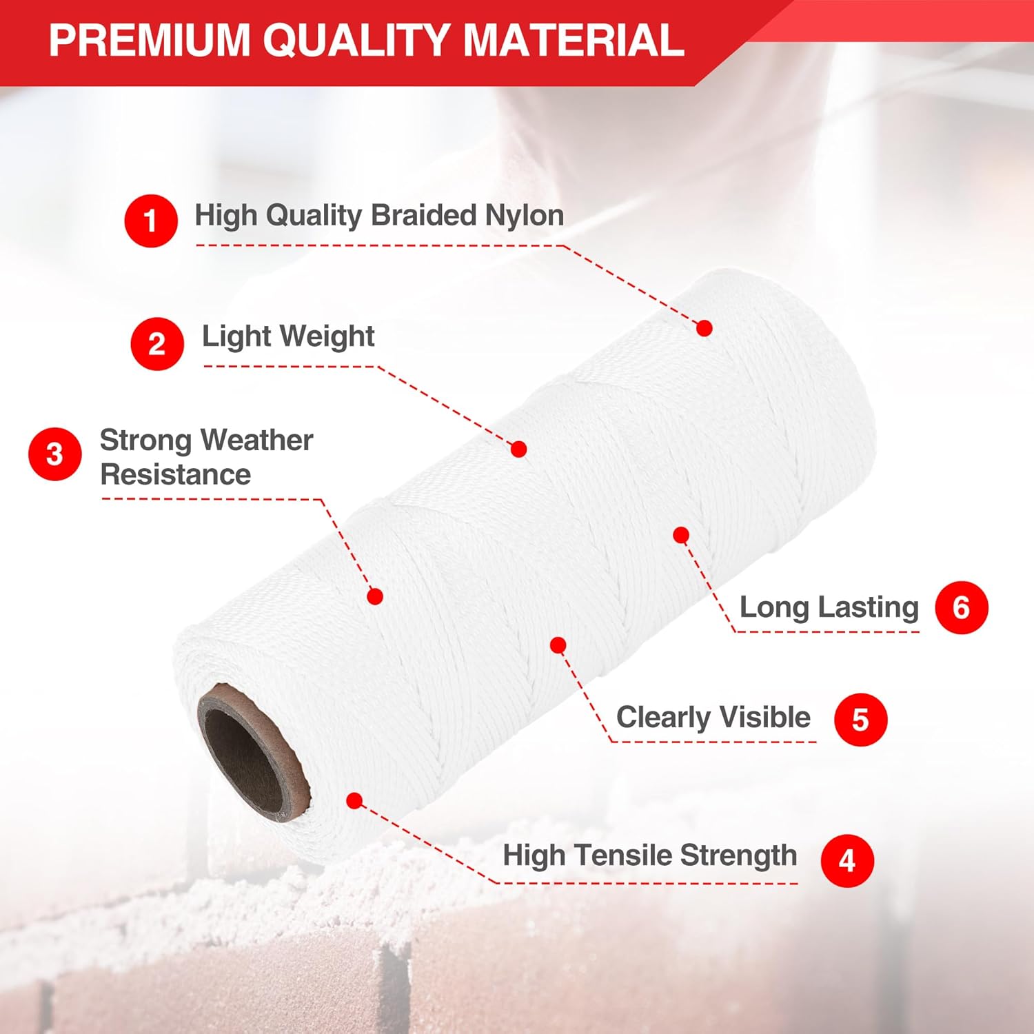 • Multiple Applications: Nylon Mason Line for Outdoors activities & Home use such as used every day by the professional brick mason, can give you a straight line for accuracy when laying bricks or blocks. Used for gardening to make climbing strings. Hanging picture frames, and bundling loose items for storage