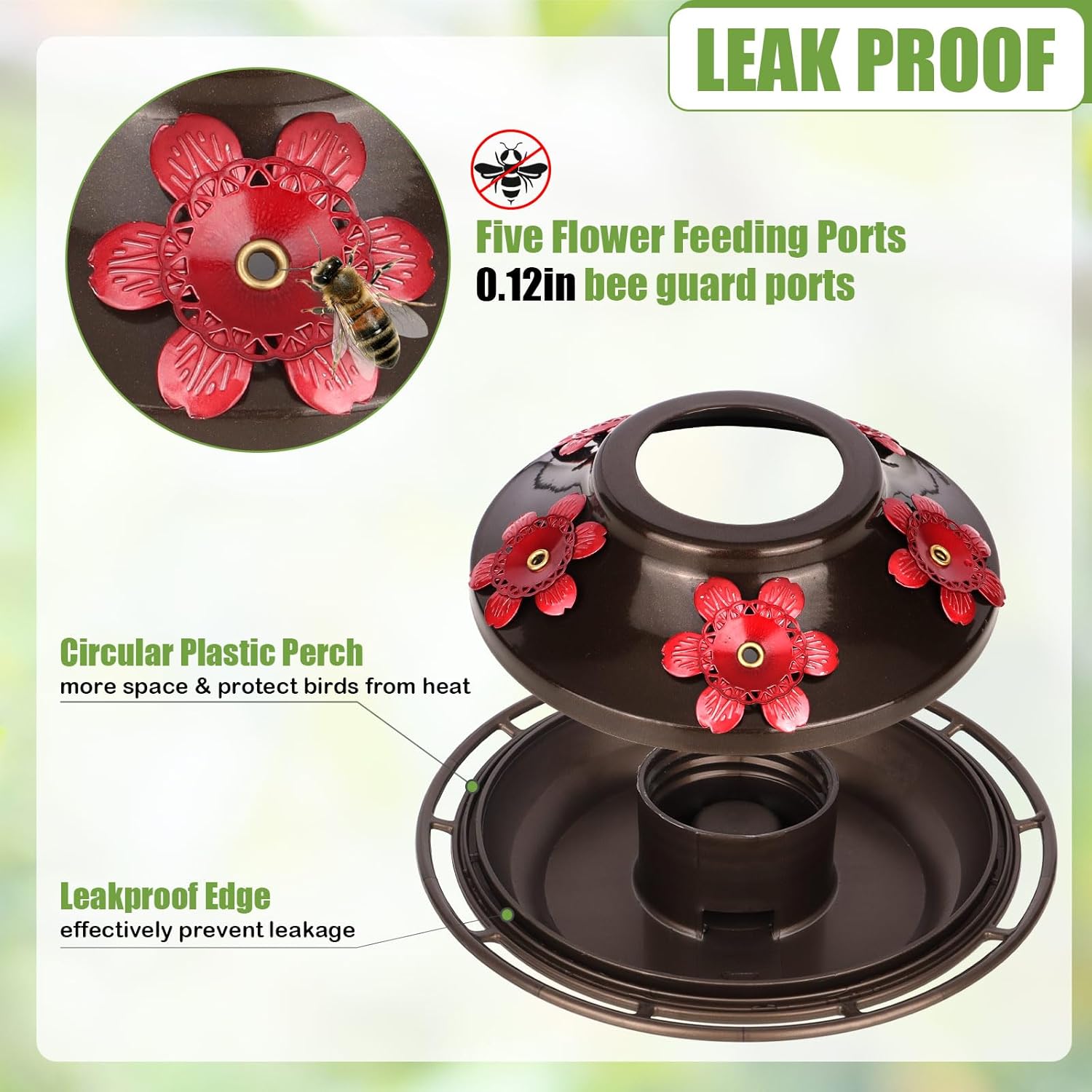 • Ample Feeding Space: Five flower shape feeding prorts are perches arranged in a circular manner for several humming birds dine and rest at the same time. Upgraded glass hummingbird feeder with 22 oz nectar capacity have perfect size to keep nectar fresh
