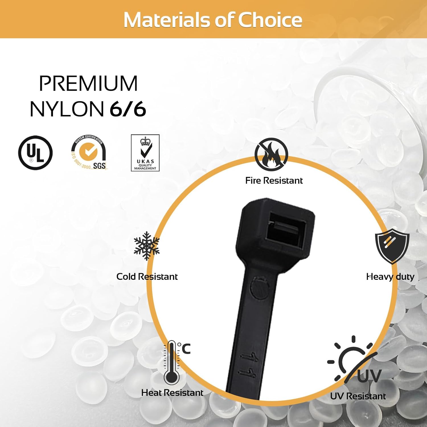 • Durable Material: These cable ties are made of high-quality nylon material, which is known for its strength and durability. They can withstand extreme temperatures, making them ideal for use in harsh environments.