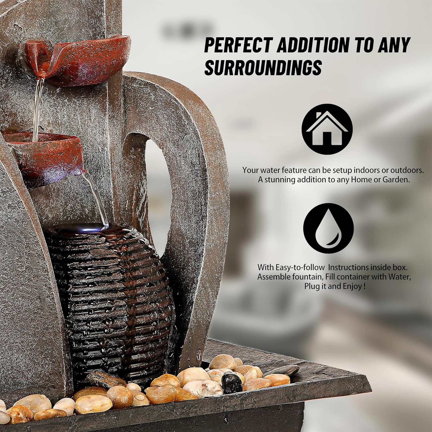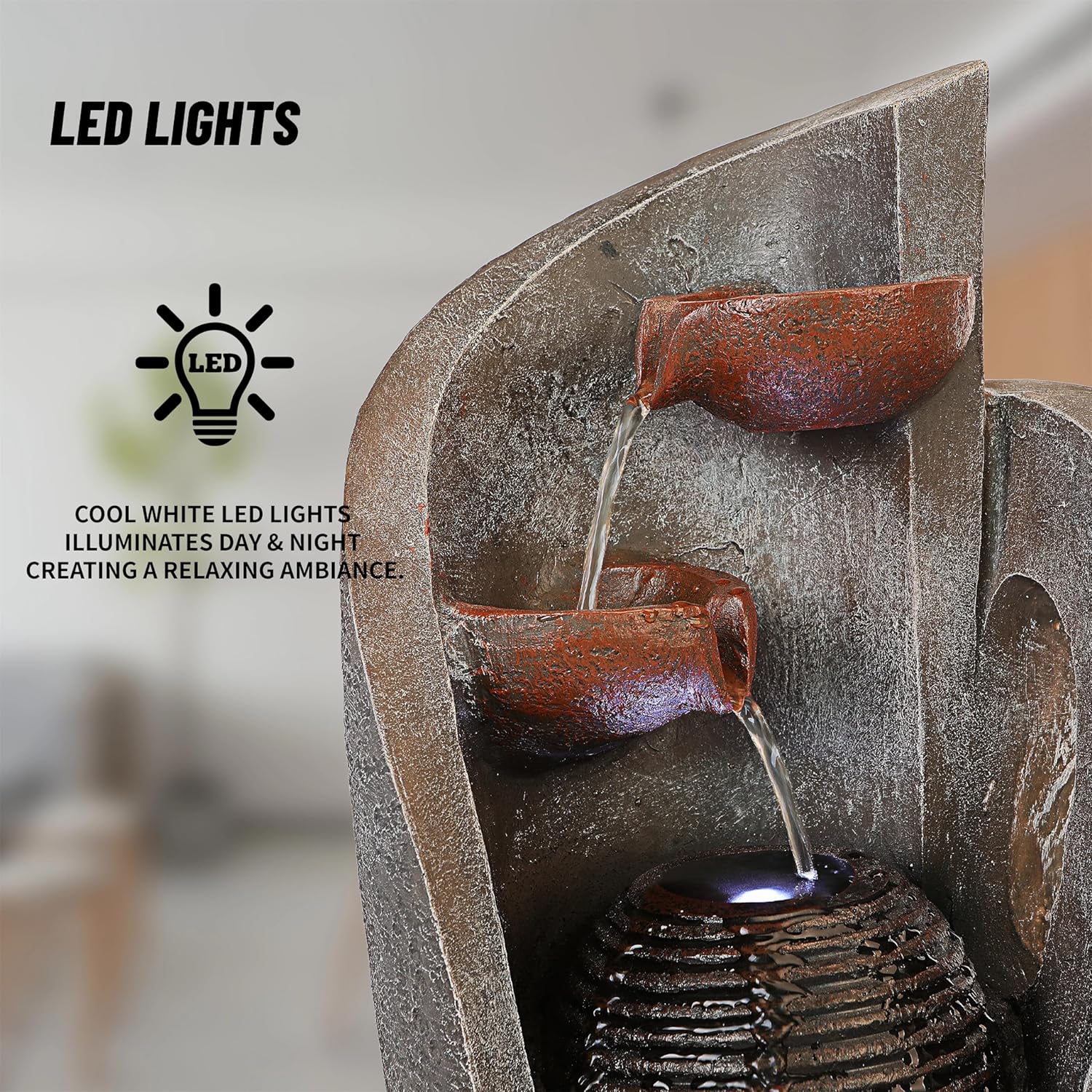 • Transform your outdoor space with our captivating outdoor water fountain. Designed for durability, it adds charm to gardens and patios with the landscape enhanced by potted LED lighting as an elegant focal point. Enjoy the soothing sounds of nature while unwinding outdoors