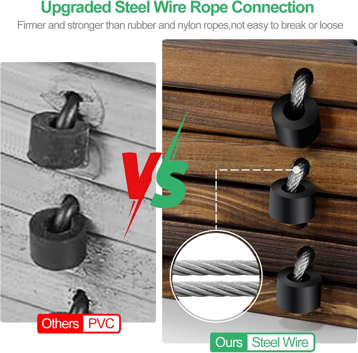 • Firm Steel Wire Rope Connection:Each plank is firmly connected with 2 rows of steel wire ropes and rubber spacers,which are more aging-resistant and anti-loosening than rubber and nylon ropes,while providing better protection to the wood surface!What’s more,this kind of connection gives the garden wooden pathway sufficient flexibility and durability to adapt to all kinds of uneven ground,like beach,grassy road,sandy road,icy road,snowy road,gravelly road,damp or muddy ground,boggy or bare areas