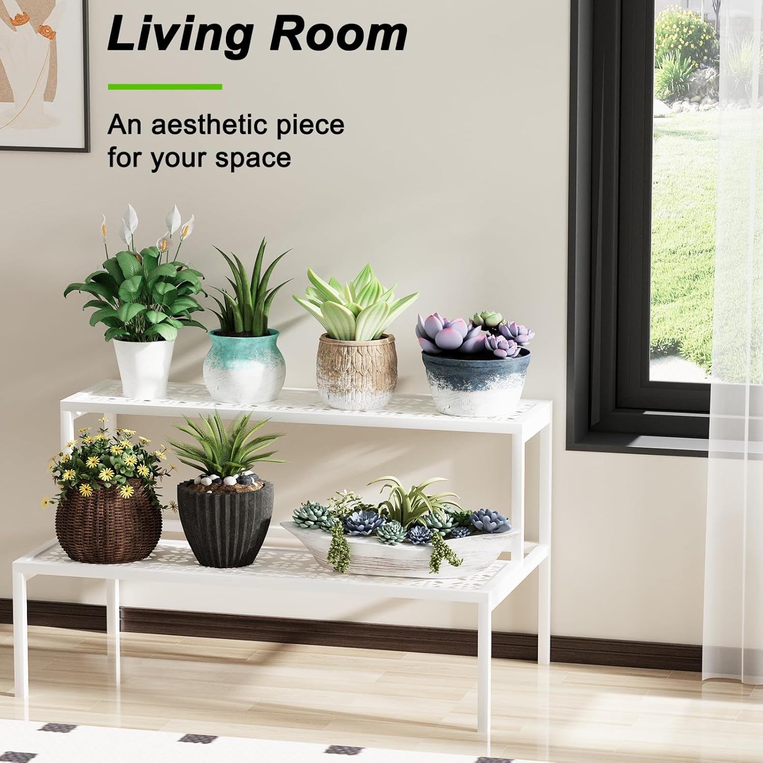 aboxoo Metal Plant Stand Metal 2 Tier Potted Multiple Flower Pot Holder Plant Shelf Indoor Plants Multiple,Outdoor Heavy Duty Planter Display Shelving Unit for Patio Garden Corner Balcony,Living Room(White)