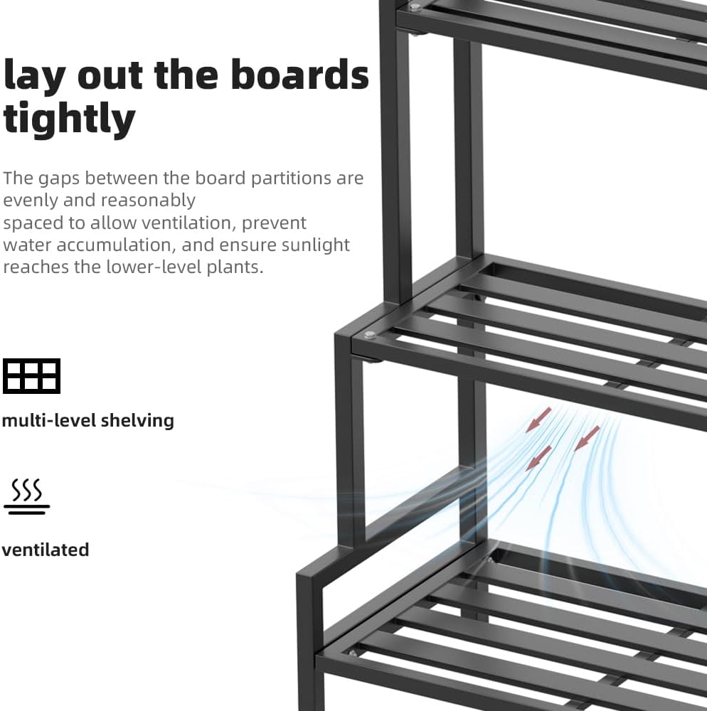 • Space Optimization: This 3-tier, stair-style plant stand offers extensive storage space, perfect for showcasing an assortment of plants. Each layer can hold 4-6 medium-sized flower pots, making it an ideal solution for space-saving.