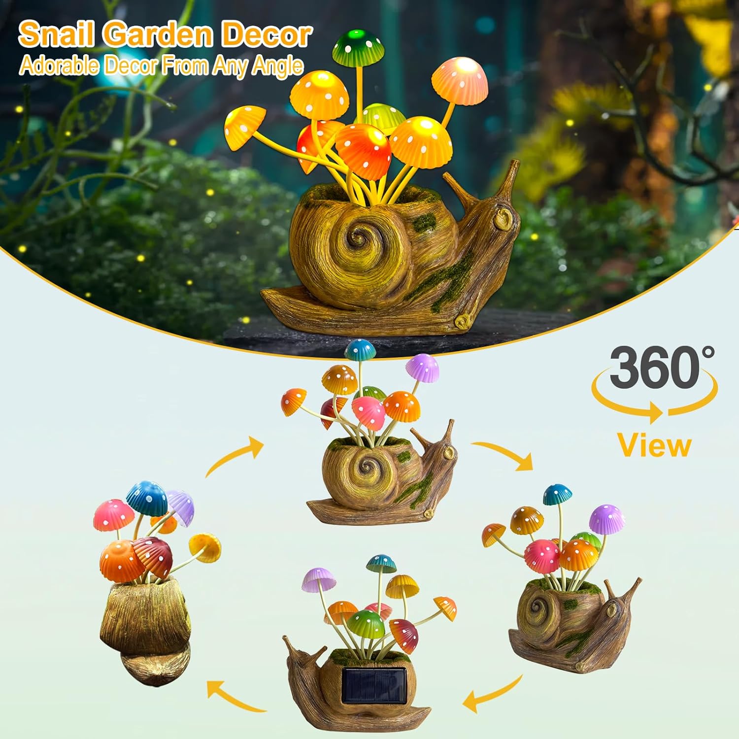 • Birthday Gifts for Women Outdoor Decor -- A adorable snail garden decor with 8 colorful mushroom, beautiful fairy garden accessories, its whimsical look bringing a touch of magic to the tranquil garden. Crafted with details, this delightful miniature figurines outdoor decorations for yard captures the essence of a snail's gentle grace and adds a lively scene
