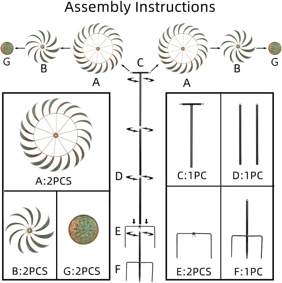 • Easy to Install: This large yard wind spinners have a simple and easy to install structure, without the need for any additional tools. Just follow the accompanying instructions for 3-5 minutes and you can quickly enjoy a happy courtyard life