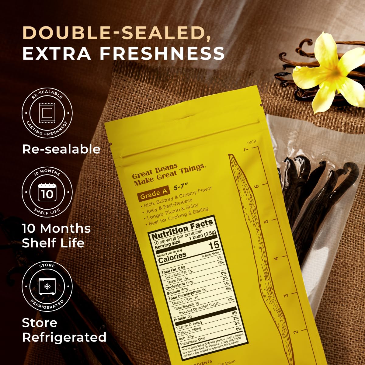 • Tested for Safety and Quality. 100% natural and plant-powered, our vanilla beans bulk are free from preservatives to uplift you with a rich, flavorful experience. All vanilla beans are tightly sealed in vacuum airtight packs for lasting fresh flavor.