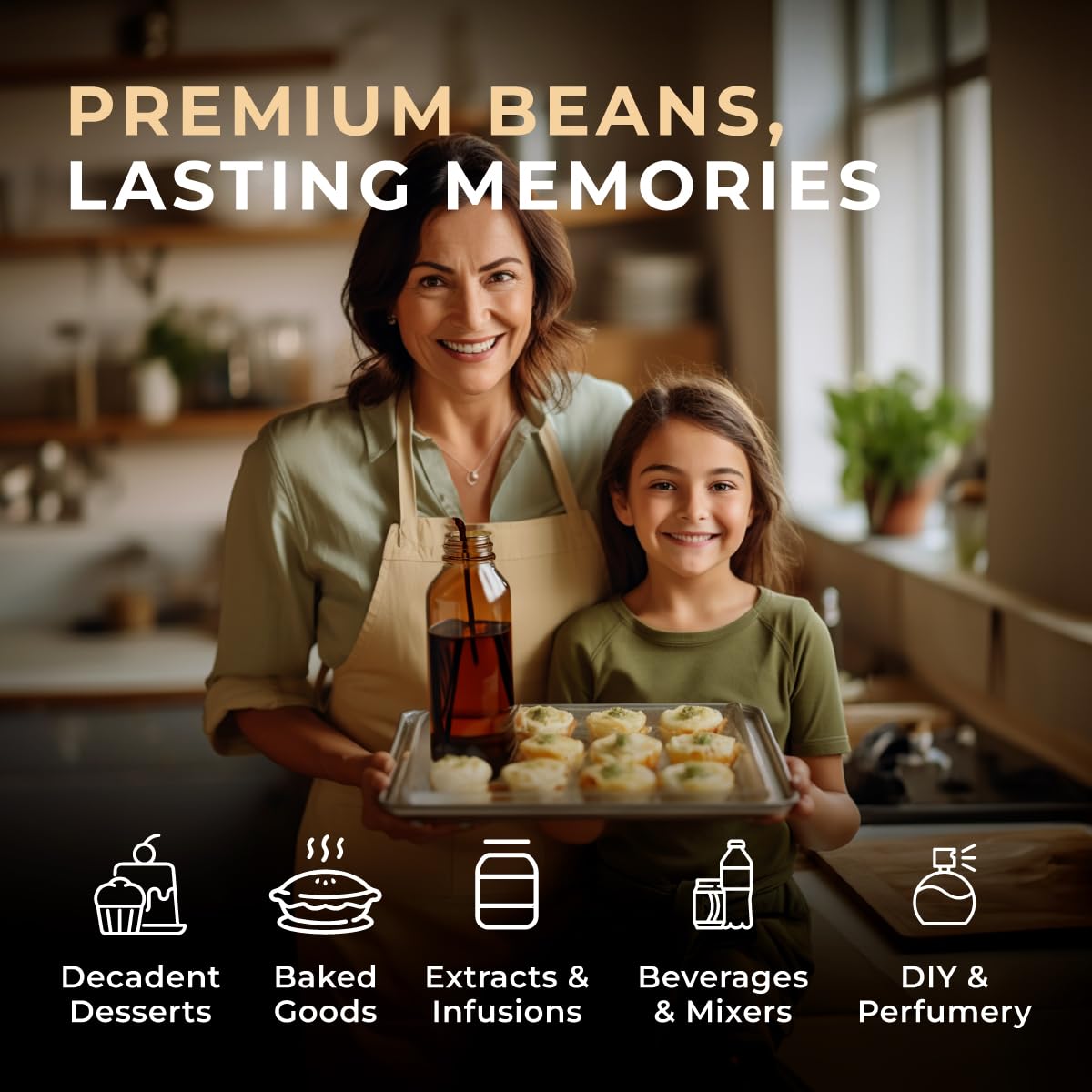 • EASY DIY HOMEMADE VANILLA EXTRACT. Slice through lengths of the vanilla bean pods to create vanilla extract. We suggest 6-8 pods for richer flavor. Immerse vanilla beans grade A+ pods in vodka or preferred spirits. Infuse for 8-16 weeks, and voila!