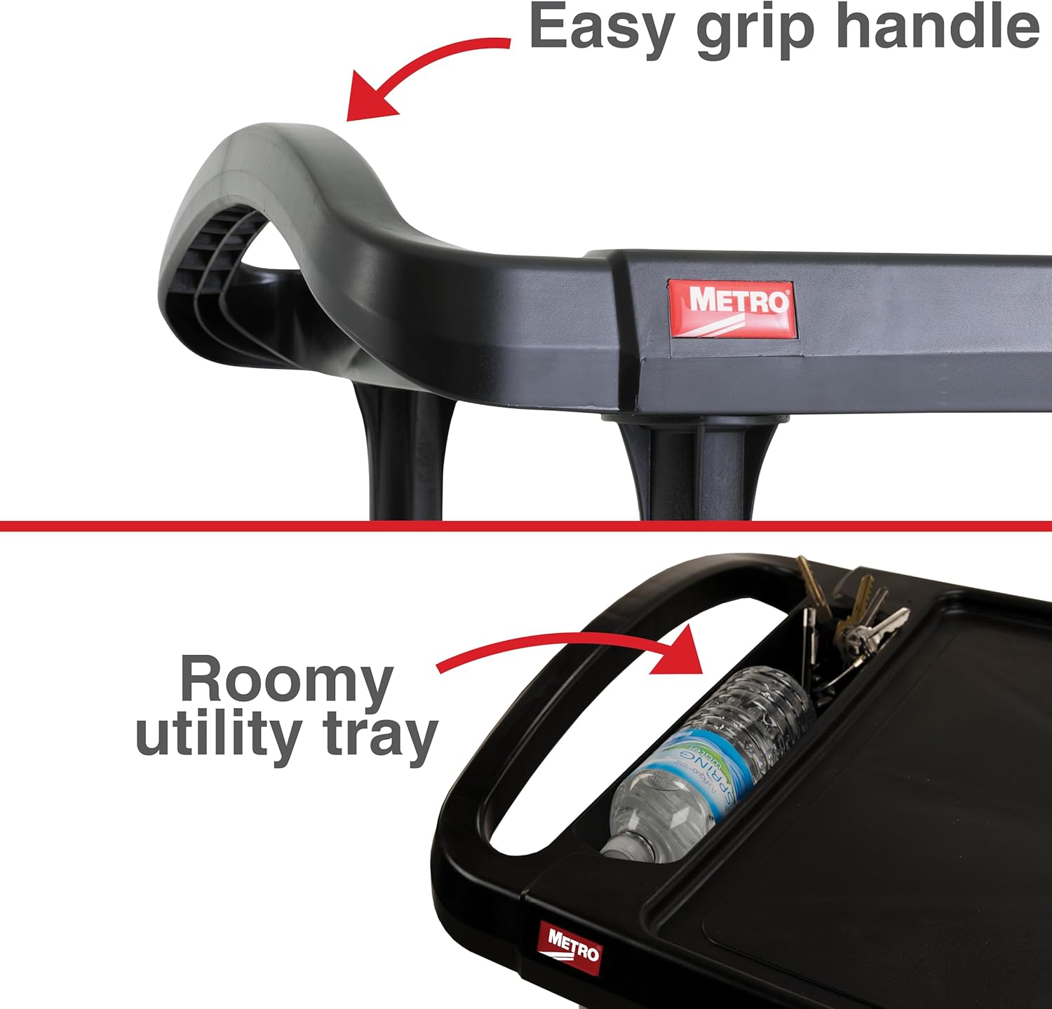 Metro myCart Plus Utility Cart - Choose-Your-Height Adjustable Heavy Duty Rolling Cart for Home, Commercial and Industrial Use - 2-Shelf, 400 lbs Capacity - 27.7" W x 40.25" L x 36.8-40.8" H - Black