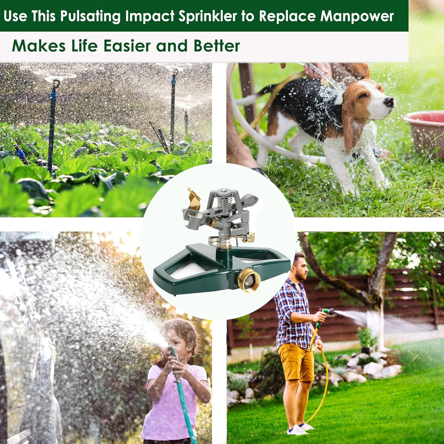 Heavy Duty Metal Pulsating Sprinkler for Yard - 360 Degree Roating Automatic Water Sprinkler for Lawn with Metal Base, Pulsating Impact Sprinklers for Large Area Covers Up to 85‘ Diameter