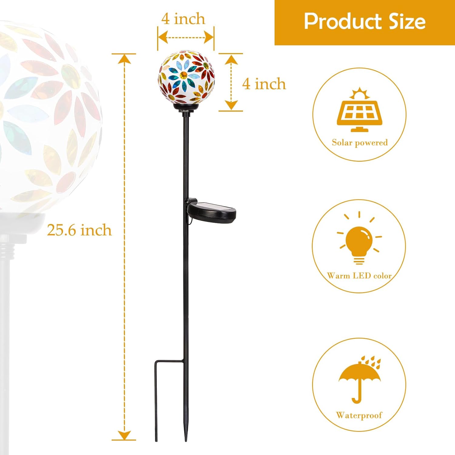 • ★Perfect choice: Whether there is sunshine or not, this fantastic Mosaic Solar Lights will add energy and color to any space. Outdoor garden stakes will make a wonderful addition to your collection of outdoor accessories, or a perfect gift for someone who loves to relax outside.