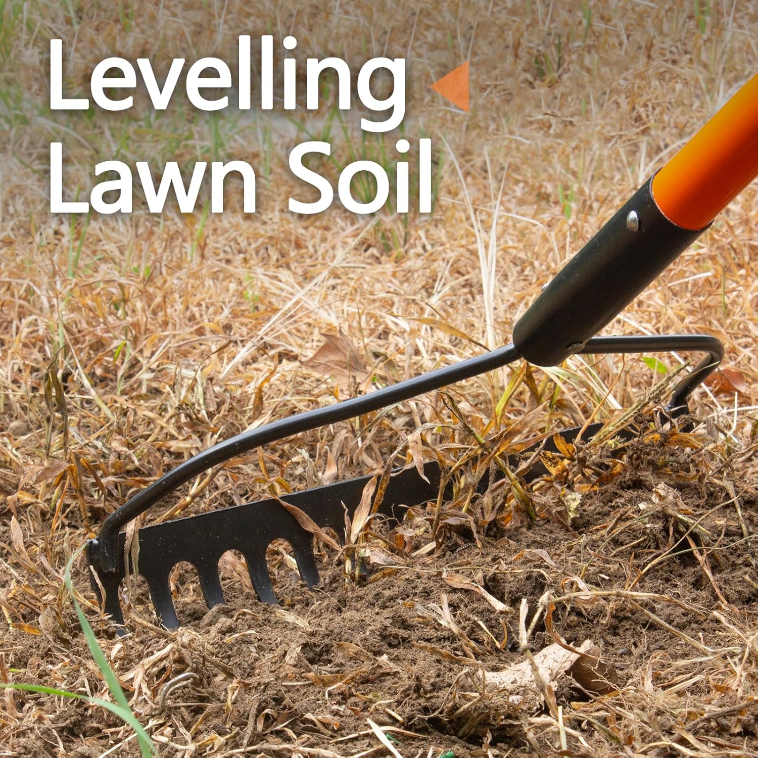 • Outstanding Durability: The metal rake head is specially coated to resist rust and corrosion even in harsh environments, the bow rake maintains its performance in wet and rainy conditions. 14 sharp metal tines penetrate the soil with ease, and the bow rake head design increases soil coverage, making every gardening task easier and more efficient.